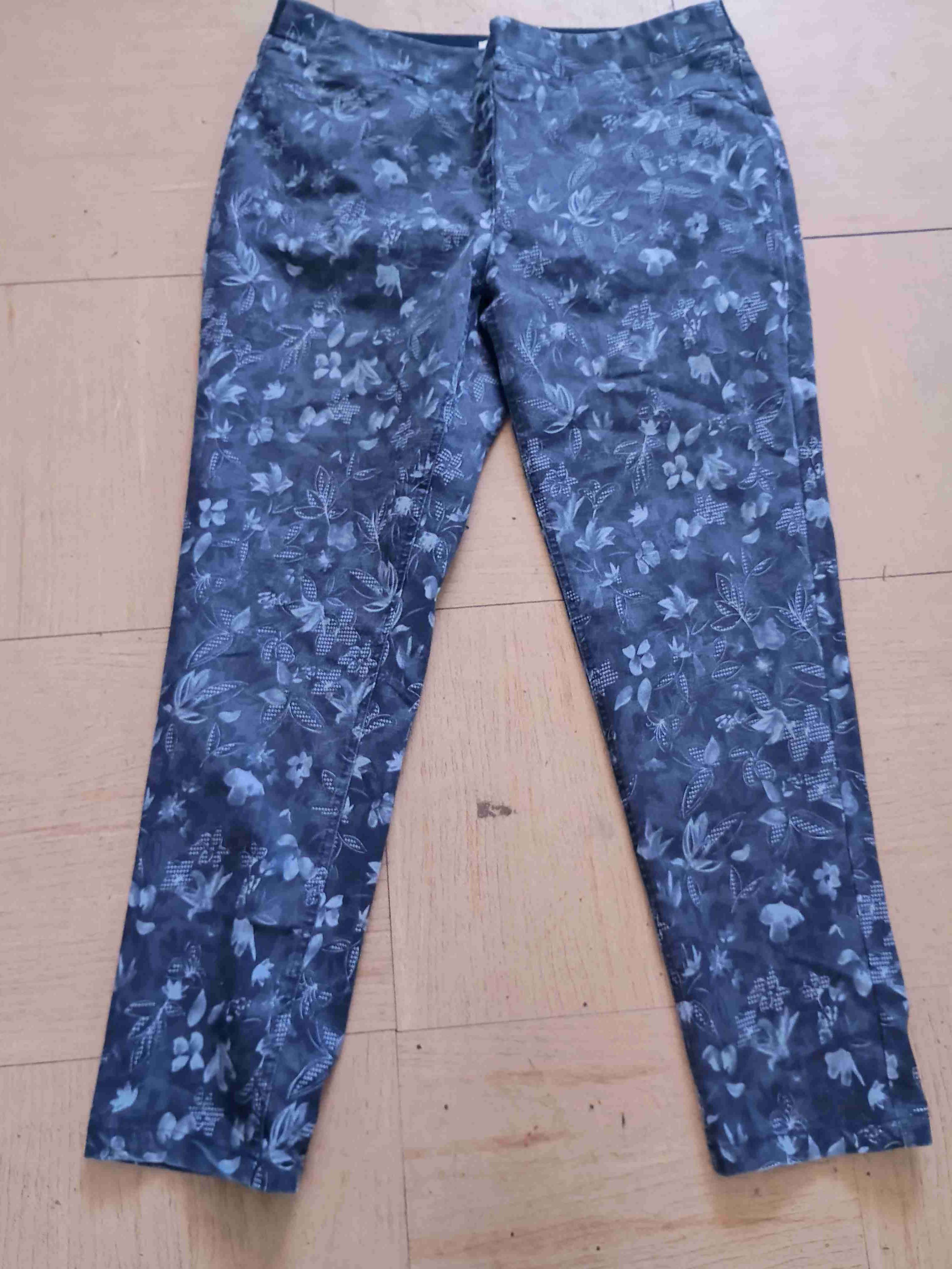 Jeans elasticado con estampado floral, estilo casual. En buen estado.