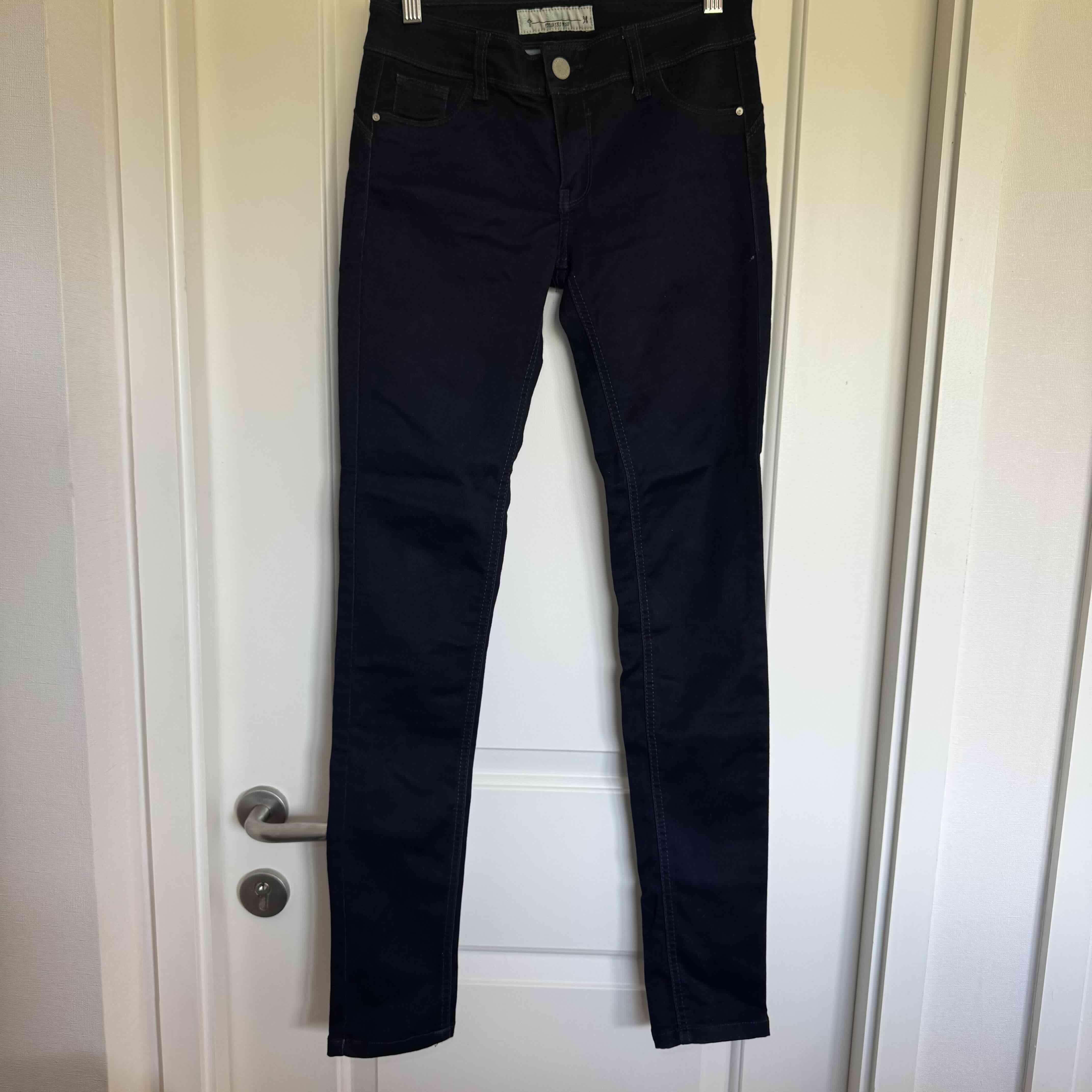 Jeans ajustados de color oscuro, perfectos para un look casual. En buen estado, usados con cuidado. Vendo por no uso