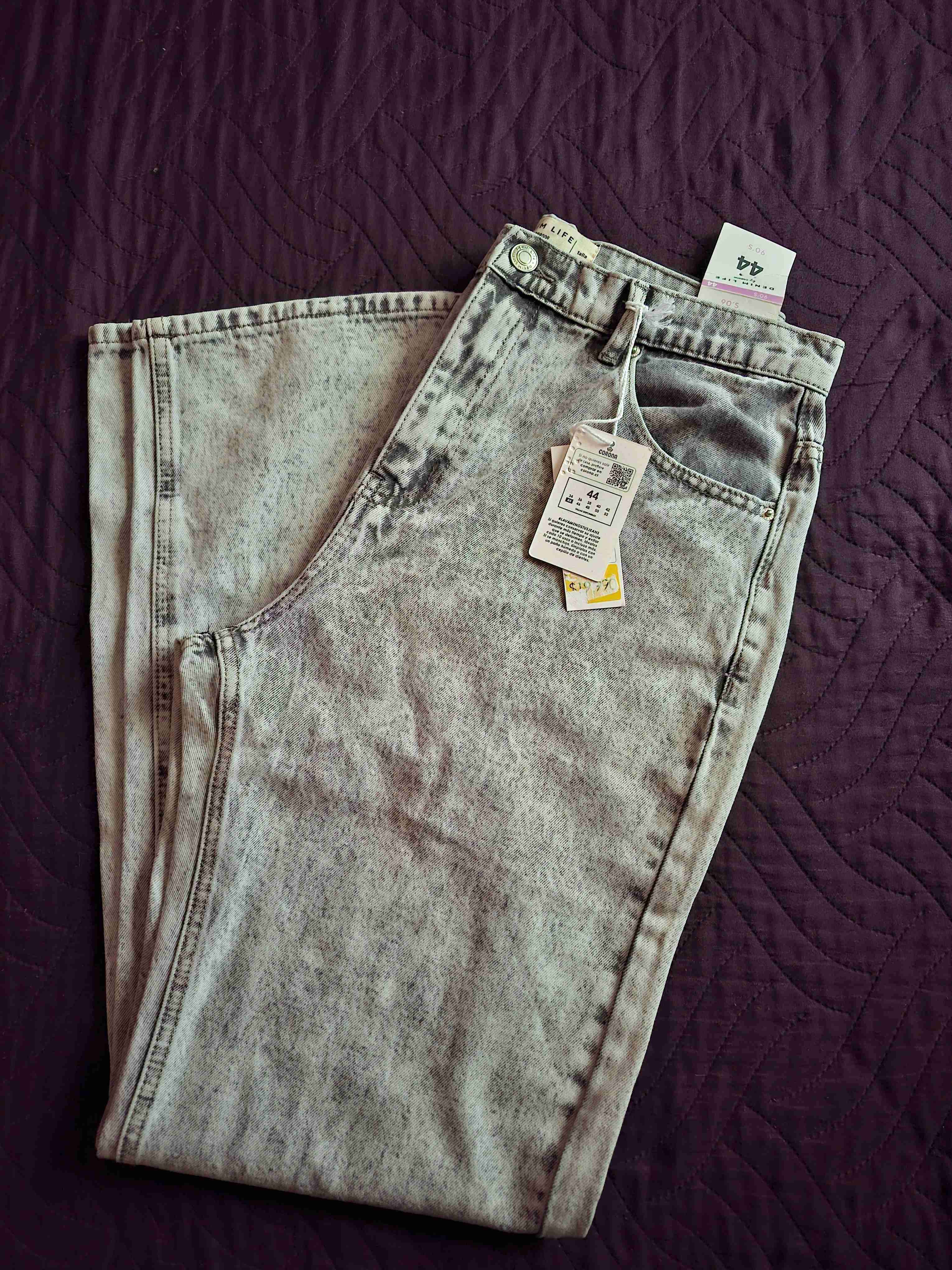Jeans gris con efecto acid wash, estilo casual y moderno. Perfecto para un look relajado.