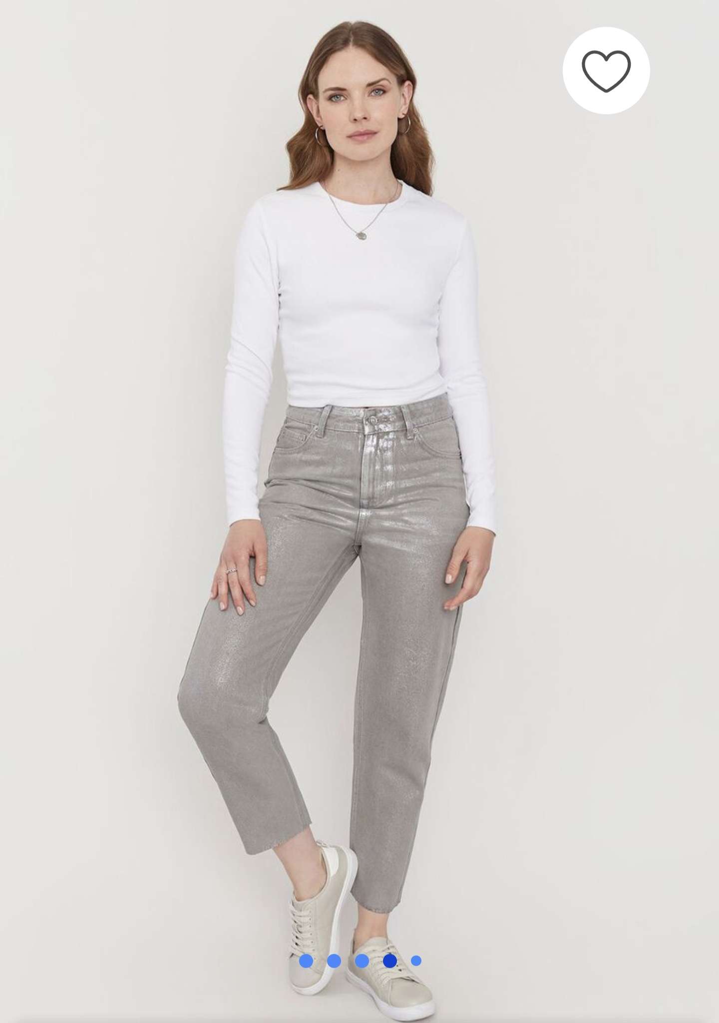 Jeans metalizado plateado Talla 36 Straight Tiro alto De tienda Corona