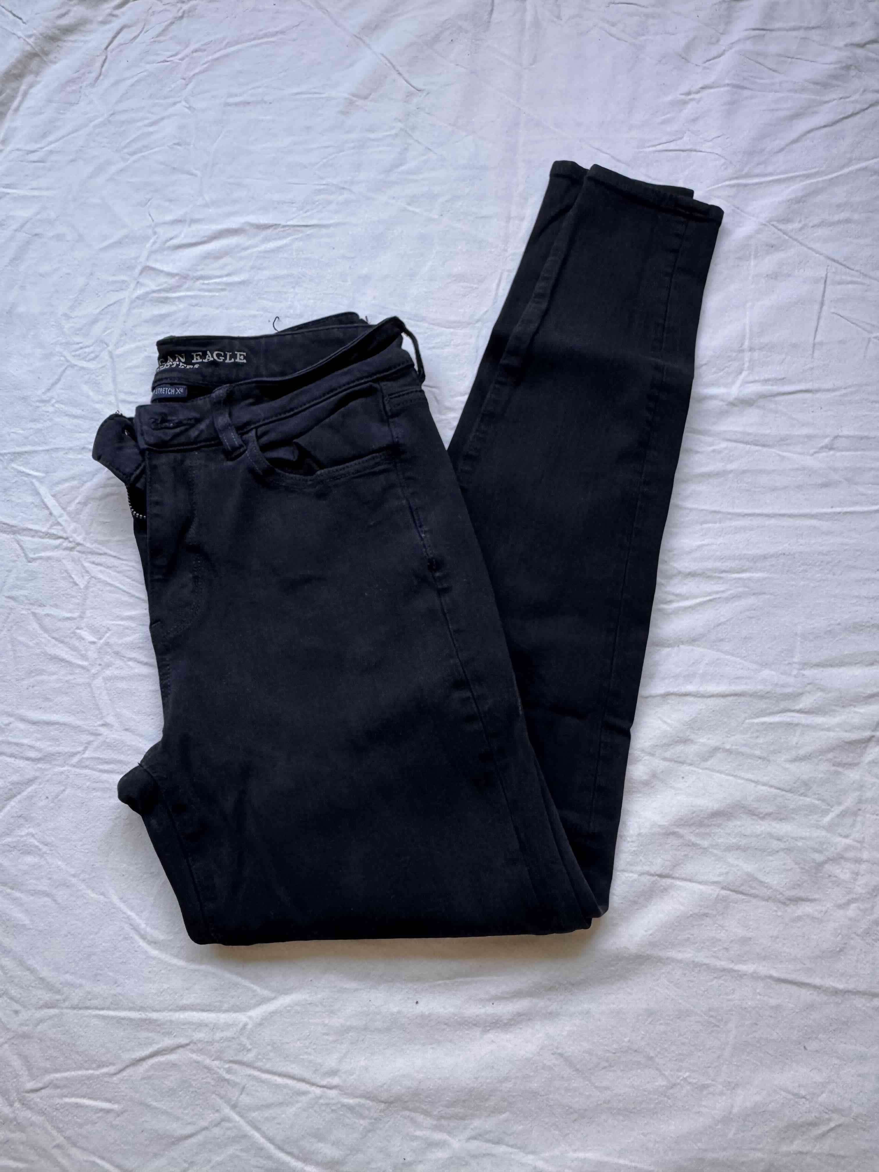 Jeans negros clásicos, perfectos para cualquier ocasión. En buen estado, muestran poco desgaste.