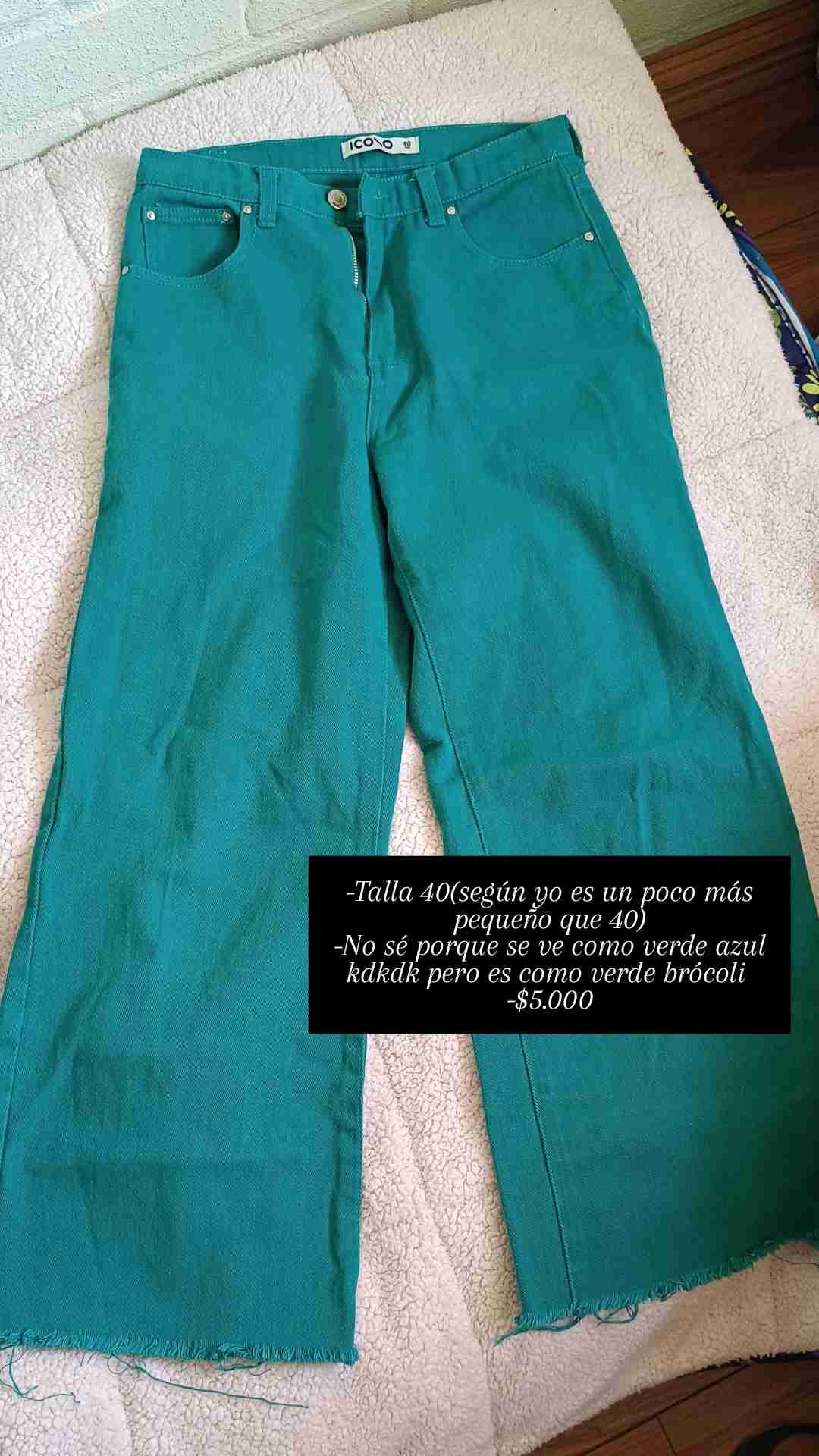 Jeans color verde brócoli, talla 40 pero más pequeño. En buen estado, ideal para uso casual.