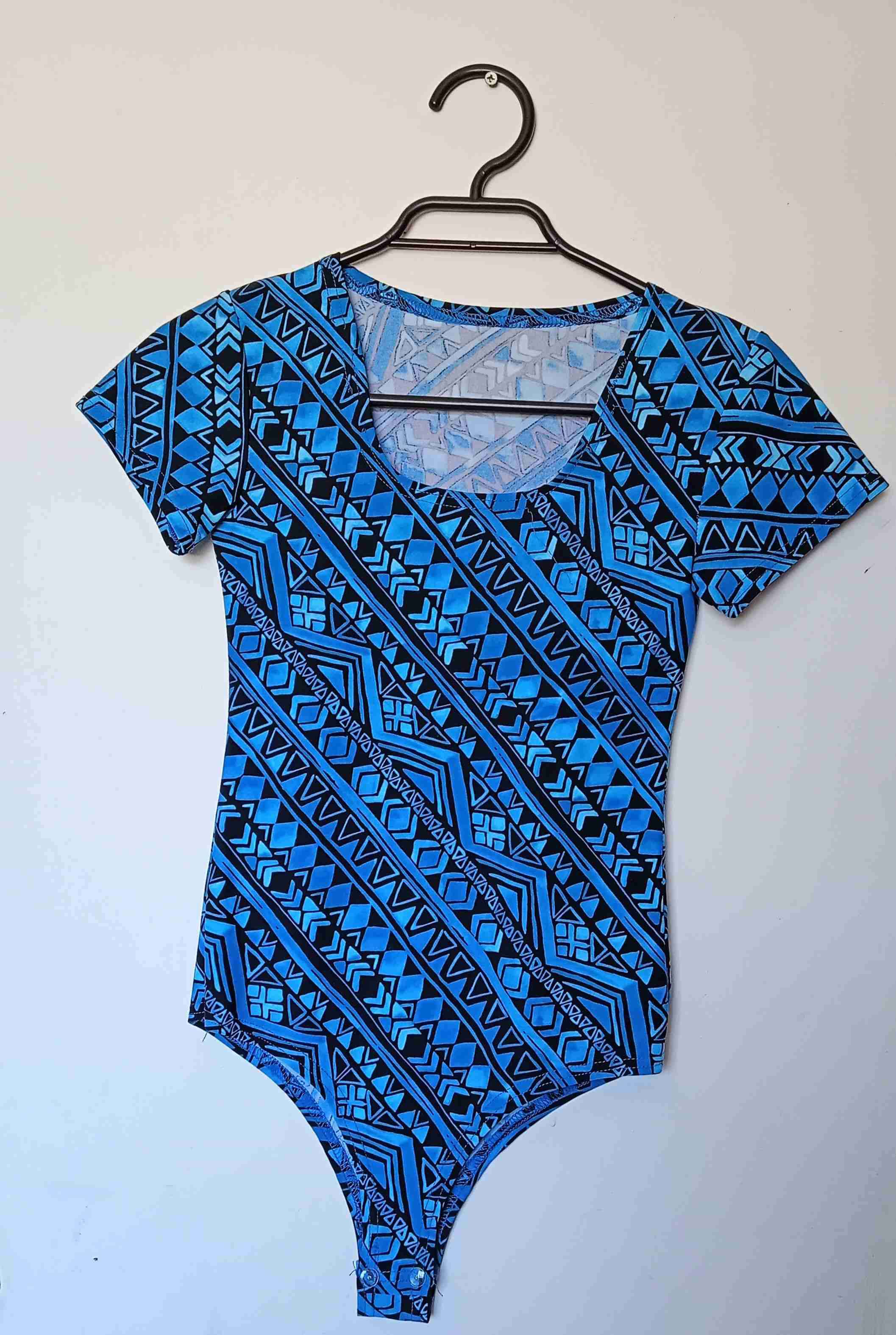 Body azul con estampado geométrico en buen estado. Ideal para ocasiones casuales o deportivas.