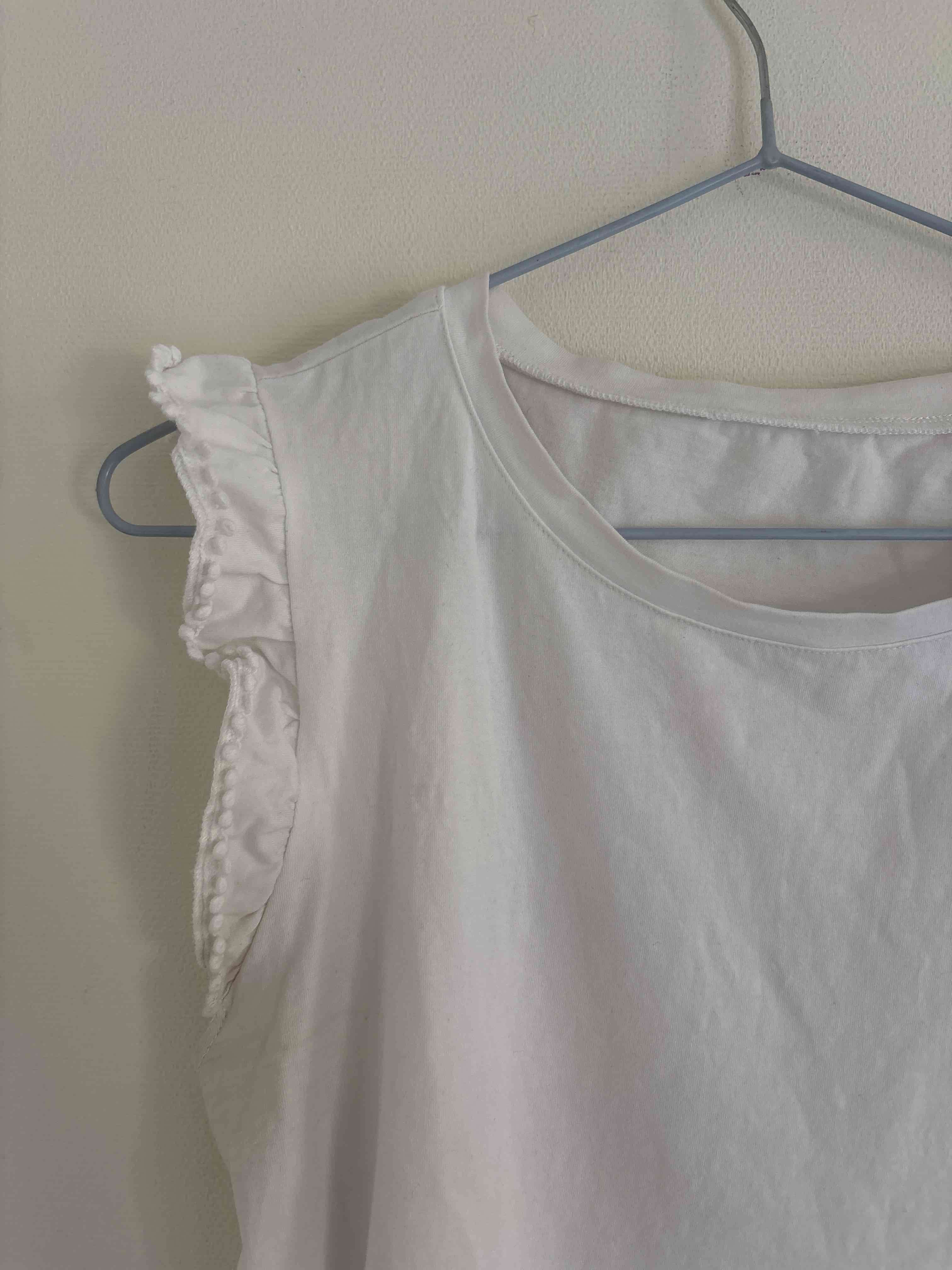 Linda polera blanca sin mangas con detalle de volantes en el hombro. Perfecta para el verano, en buen estado.