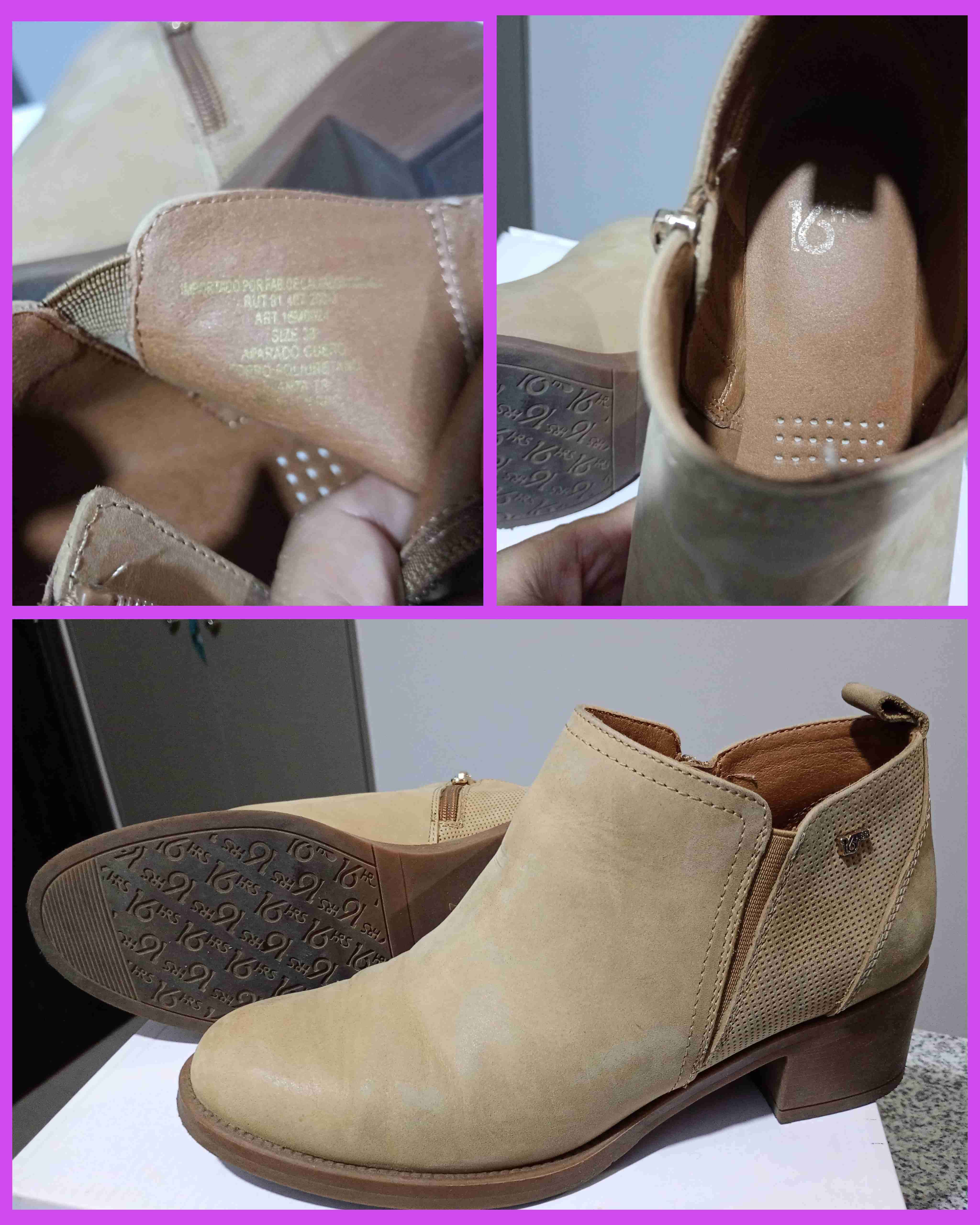 Botines de cuero en tono beige, con diseño moderno y cierres laterales. En buen estado, ideales para el día a día, usado 3 veces. Horma ancha y grande.