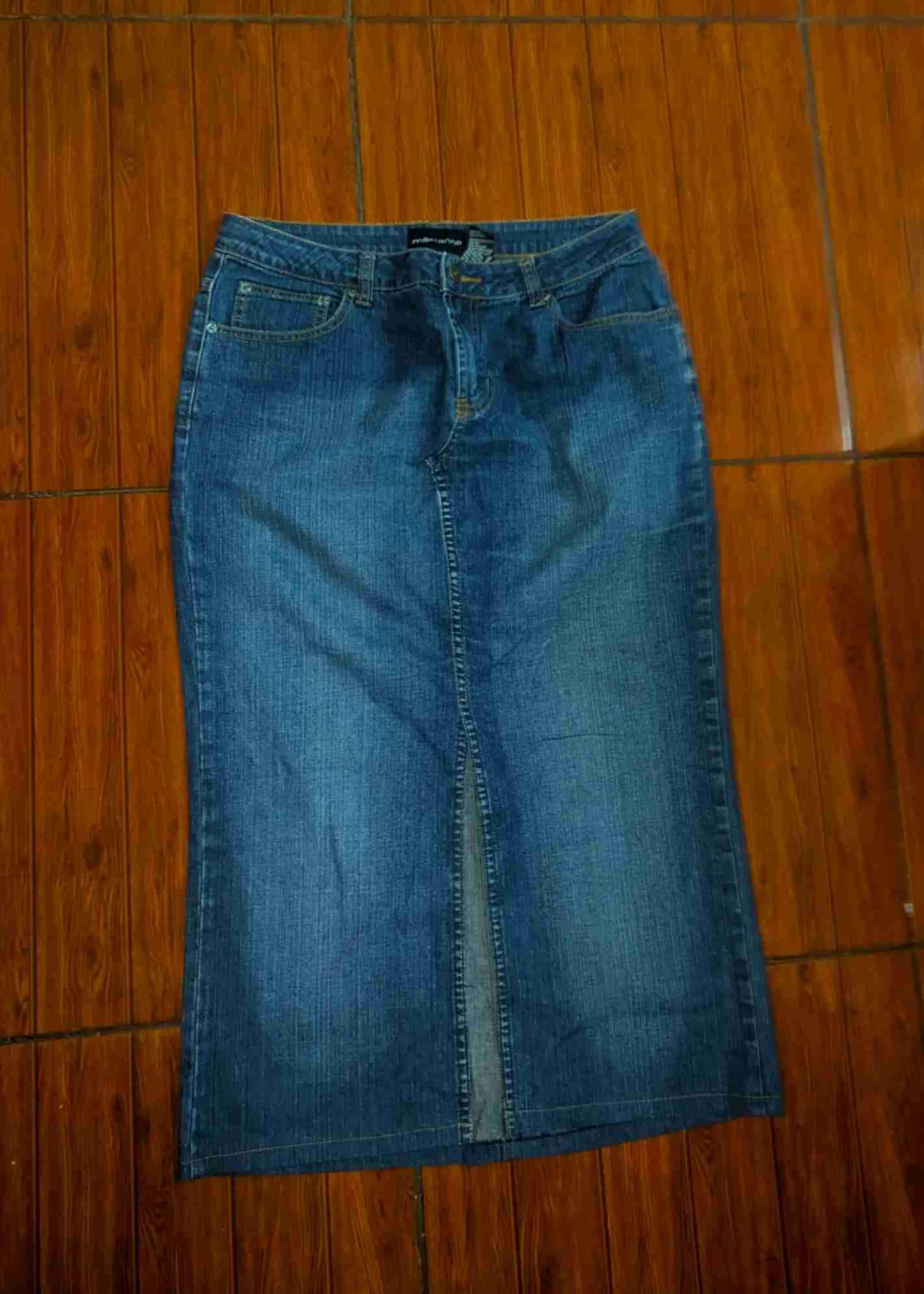 Falda denim larga azul