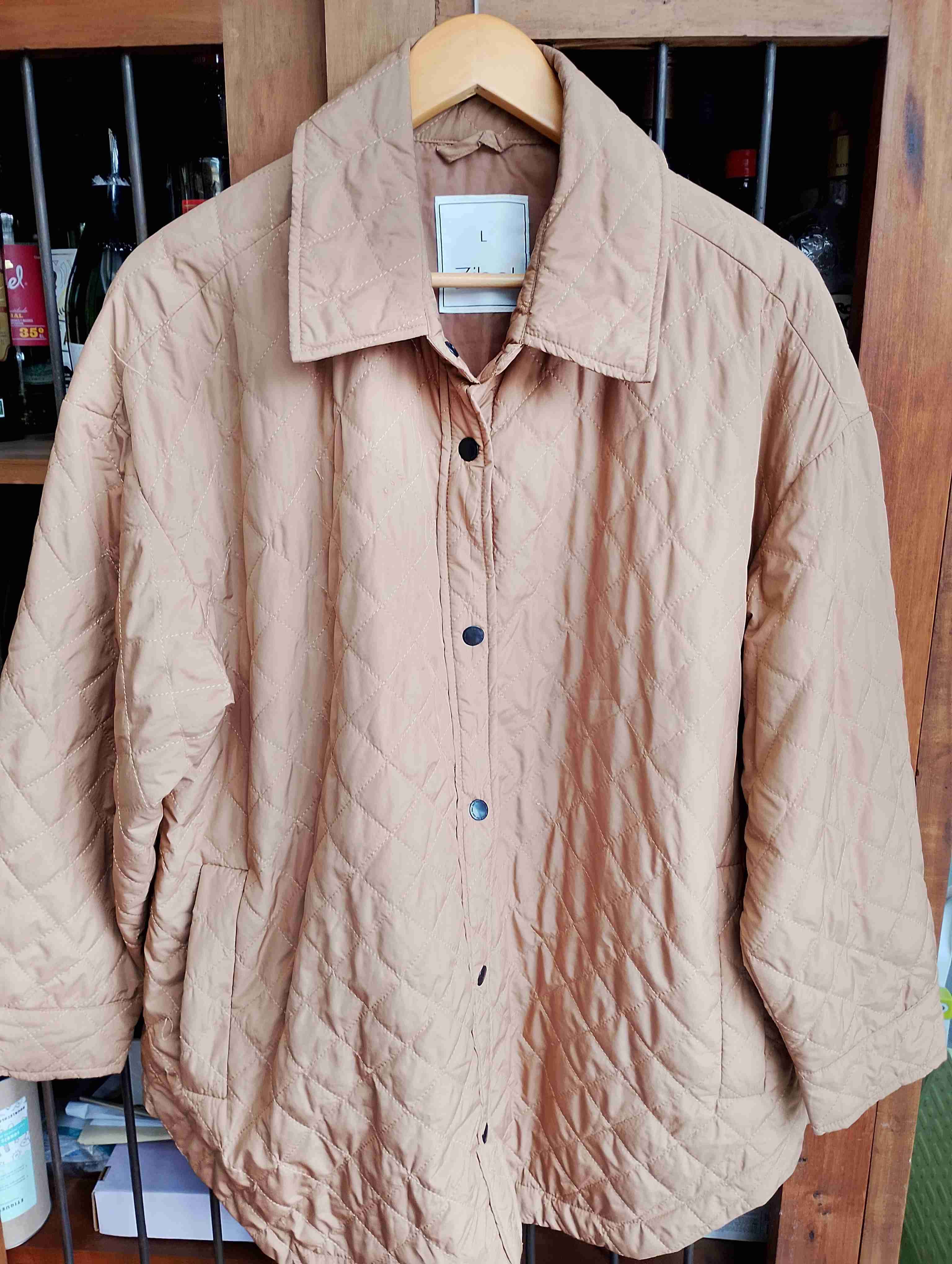 Chaqueta acolchada beige en buen estado. Ideal para días fríos, con diseño moderno y cómodo.
