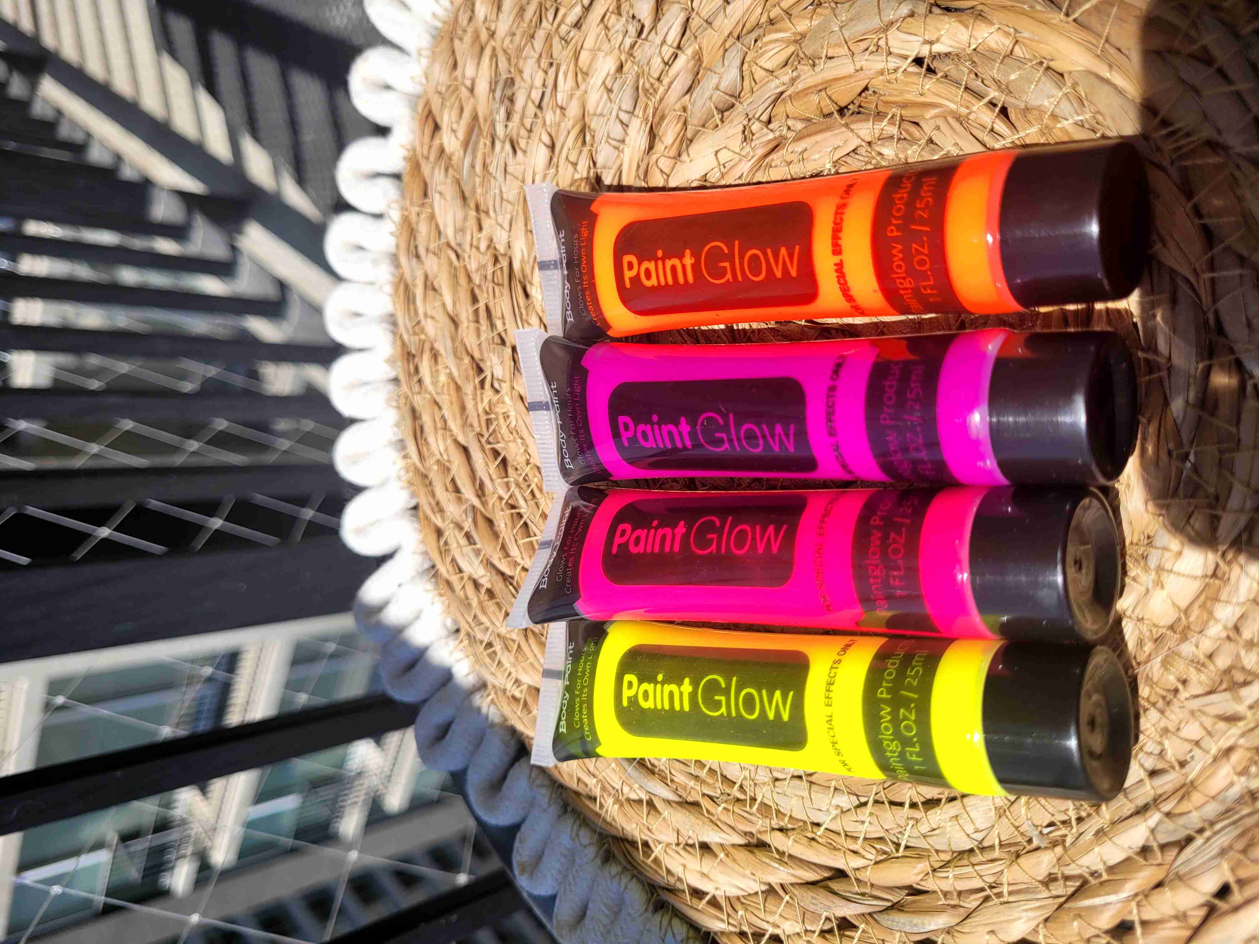 Set de pinturas para el cuerpo que brillan en la oscuridad. Ideal para fiestas y eventos nocturnos. En buen estado.
