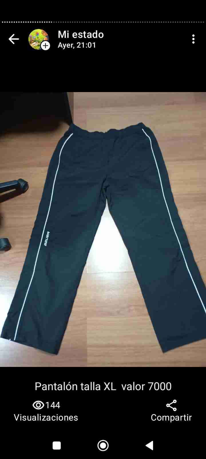 Pantalón deportivo negro con líneas blancas, perfecto para actividades al aire libre. En buen estado.