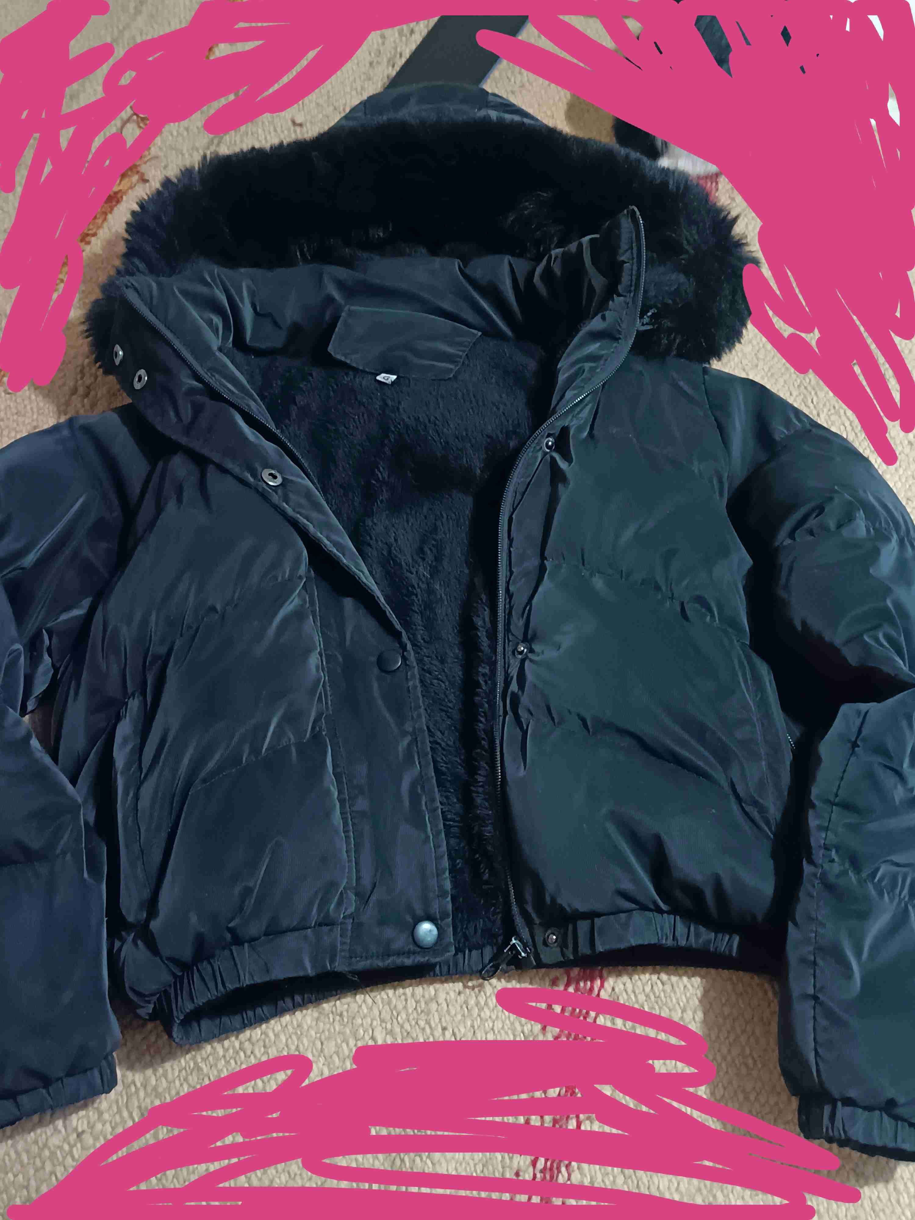 Chaqueta térmica en buen estado general. Ideal para el invierno, con capucha forrada de pelaje sintético. Prenda abrigadora para el frío.