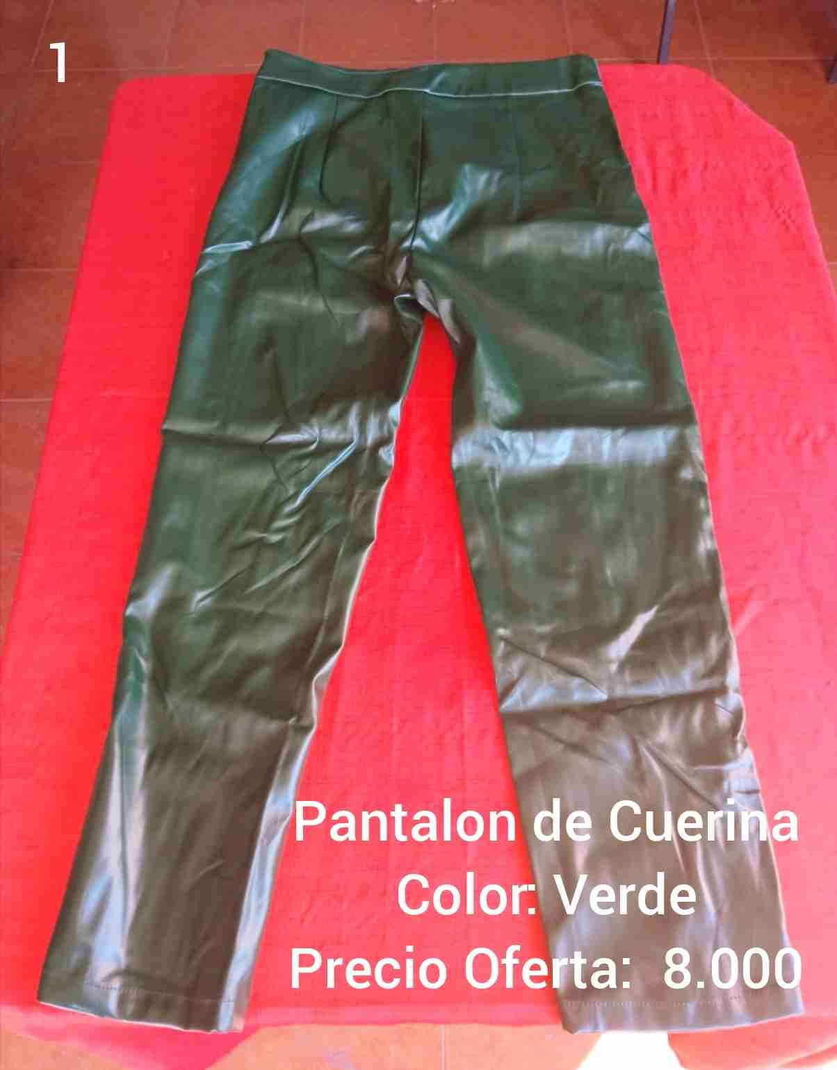 Pantalón de cuerina en buen estado, ideal para un look moderno y atrevido. Color verde, talla M.