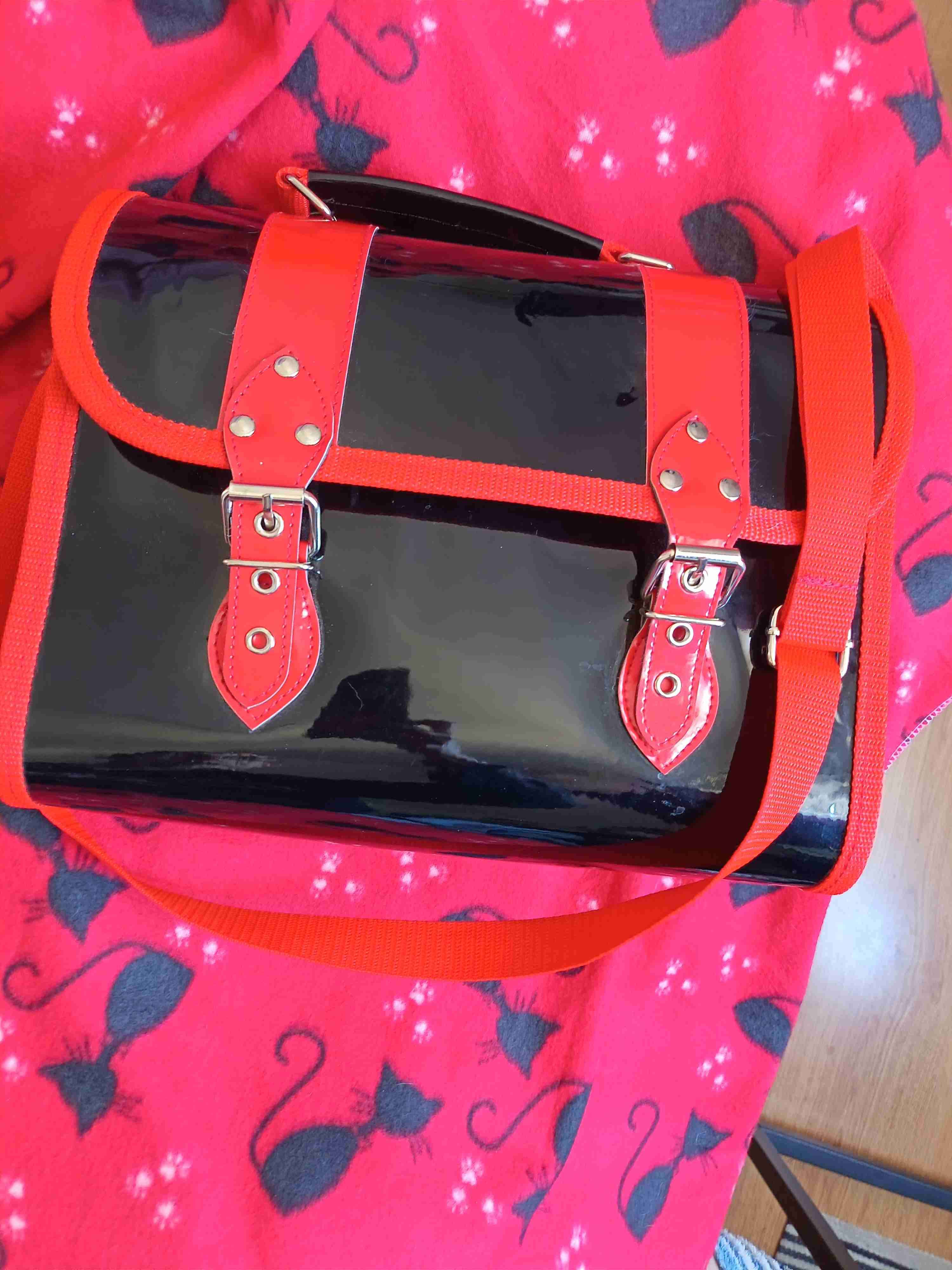 Bolso negro con correas rojas