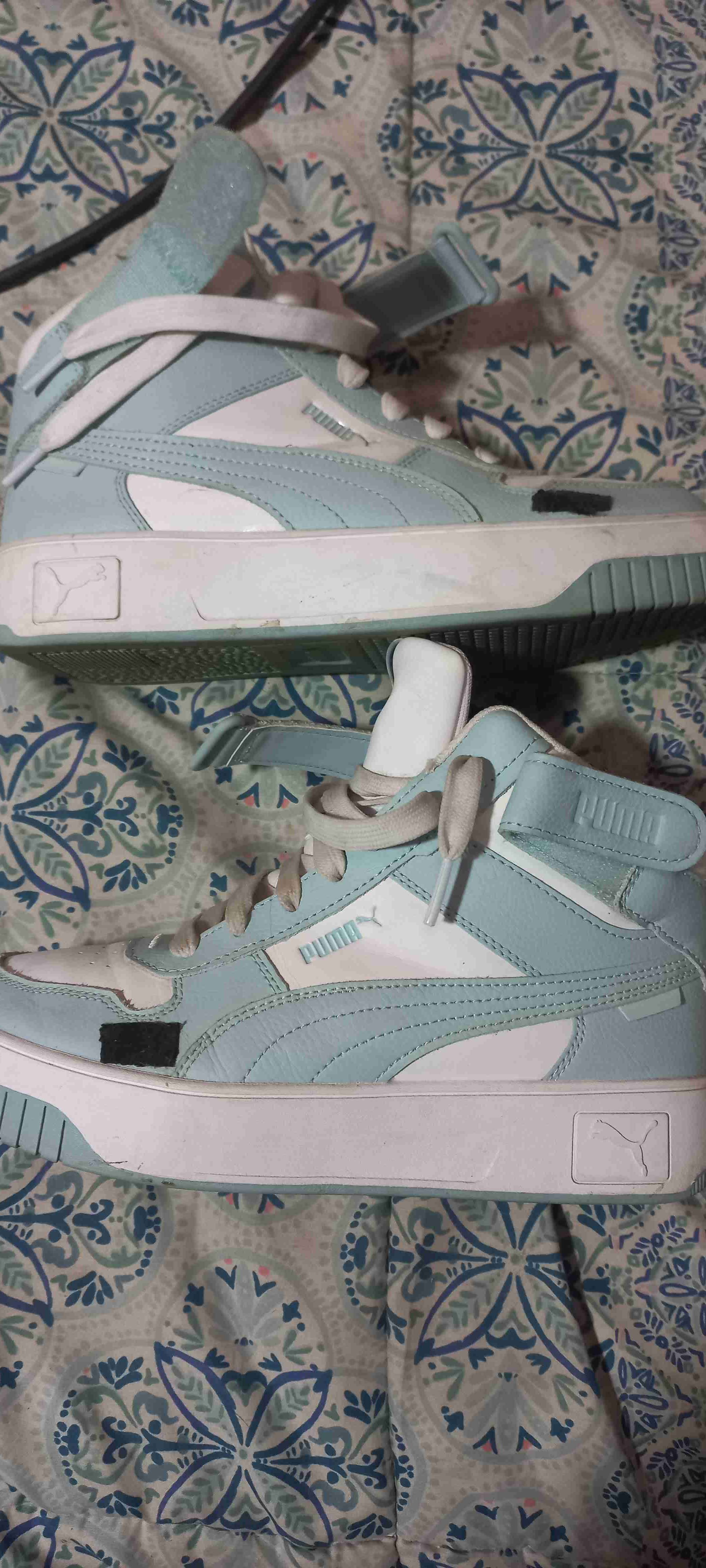 Zapatillas altas Puma en tonos celestes y blanco, en buen estado. Ideales para looks urbanos o casuales.
