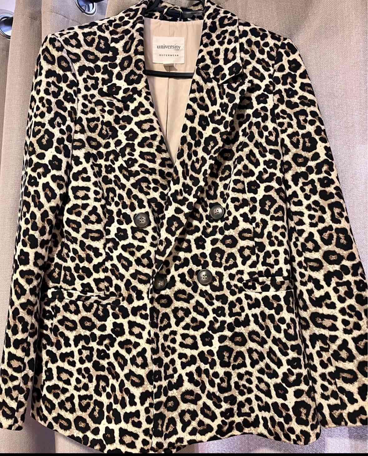 Elegante blazer de leopardo con doble botonadura. En buen estado, ideal para ocasiones formales o casuales.