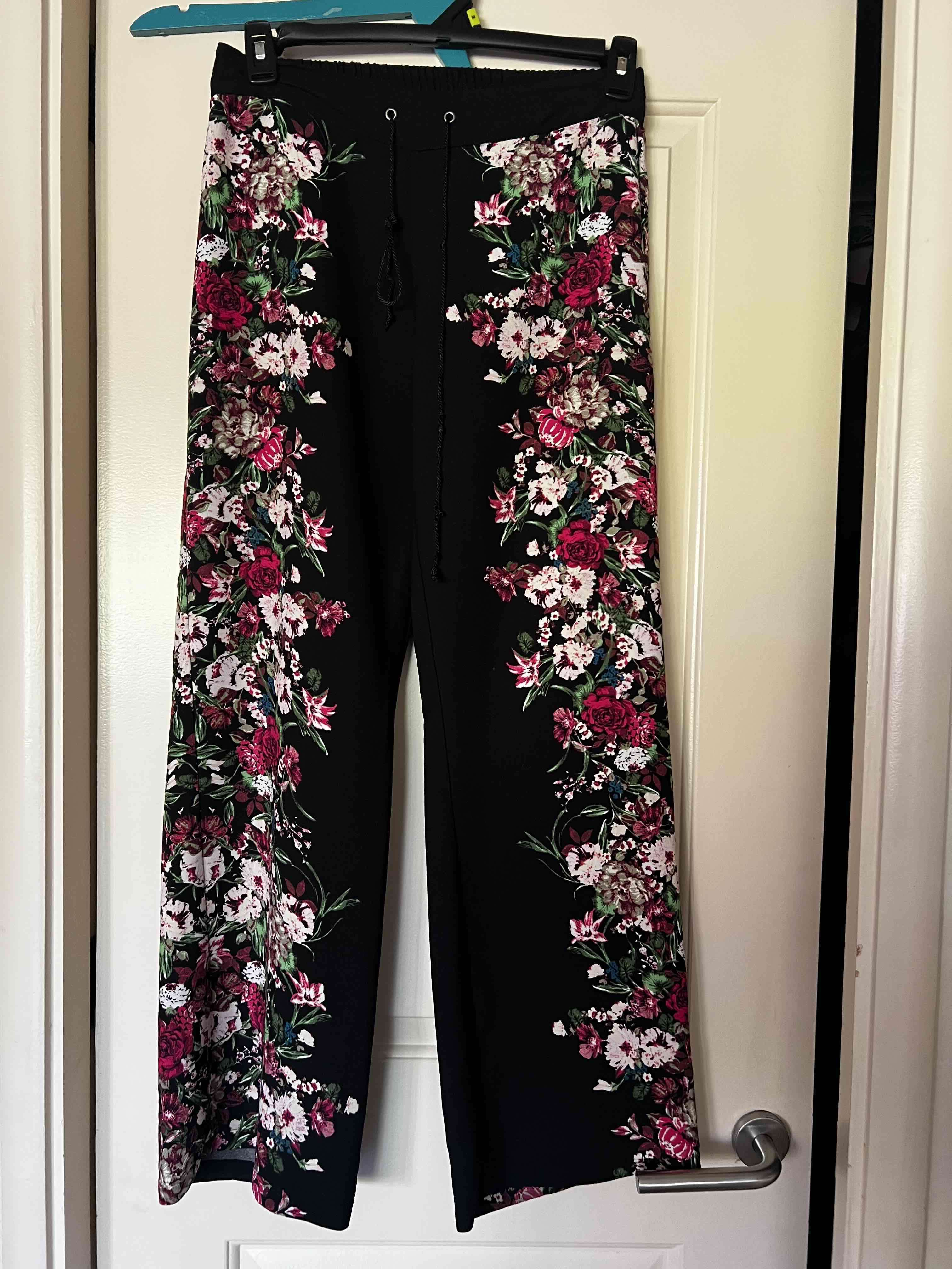 Pantalones anchos con diseño floral, perfectos para un look veraniego. En buen estado general.