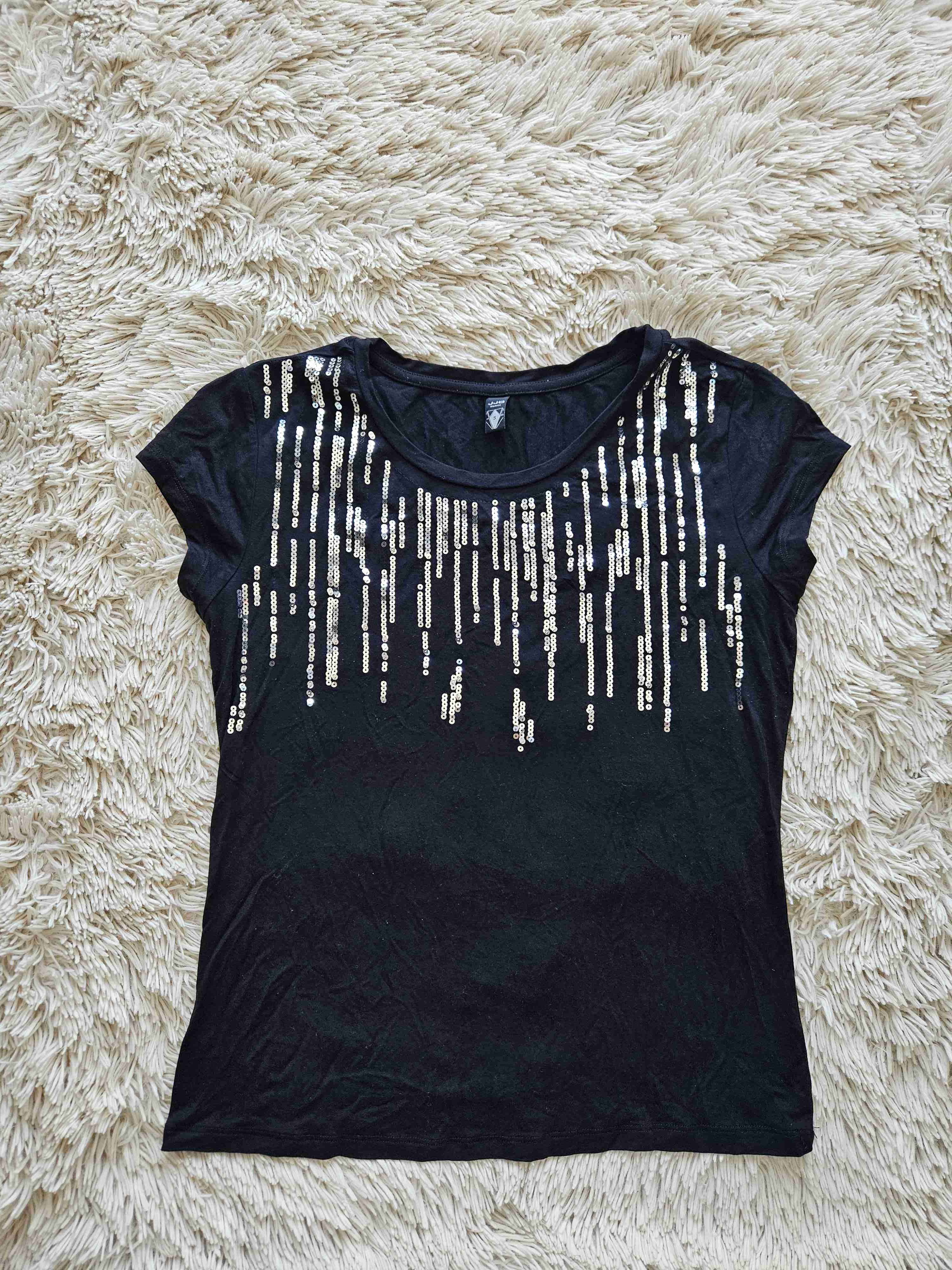 Polera negra con diseño de lentejuelas, ideal para salidas o eventos casuales. No presents ningún detalle