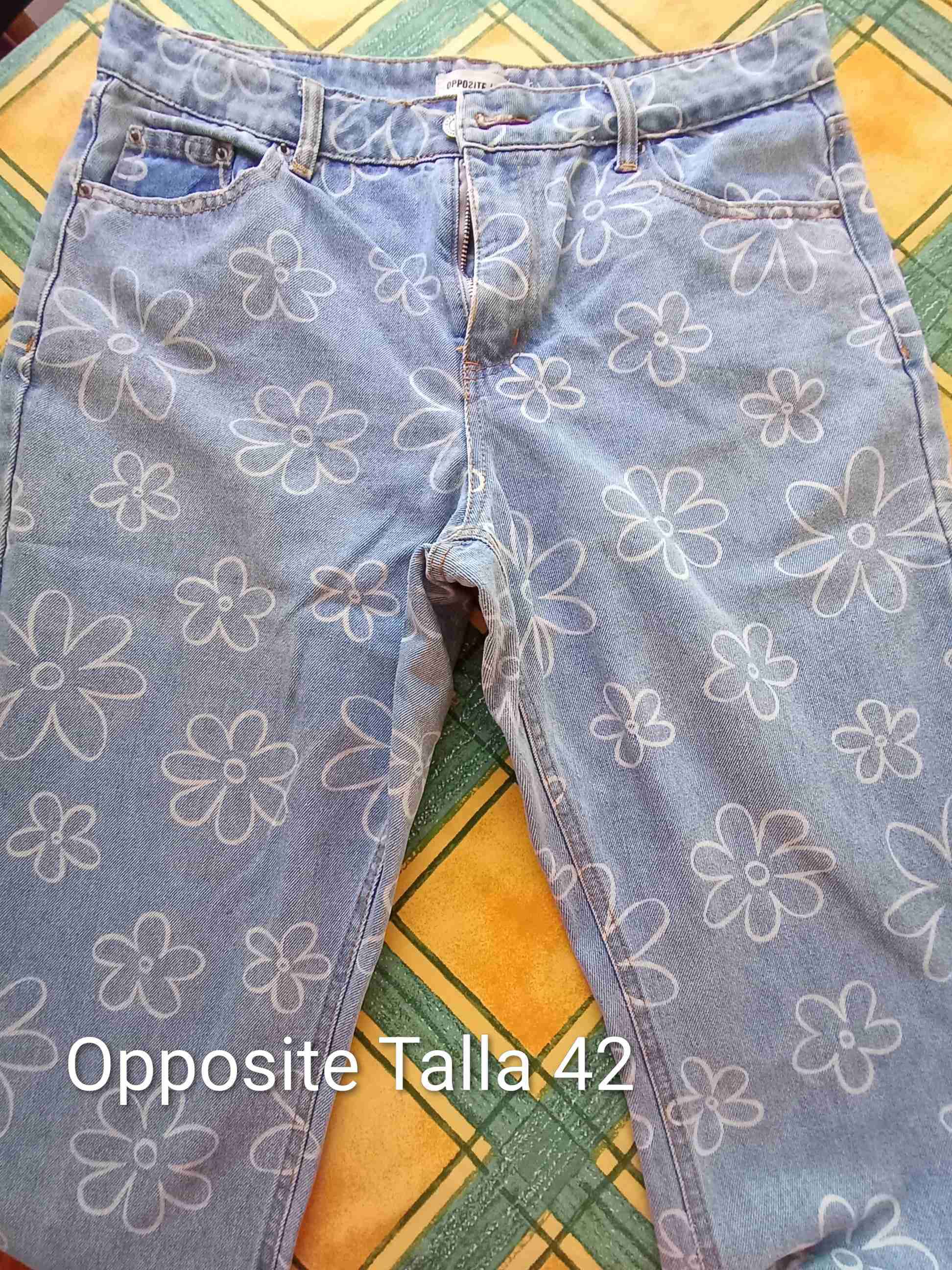 Jeans azules con diseño de flores, estilo casual y juvenil. Buen estado.