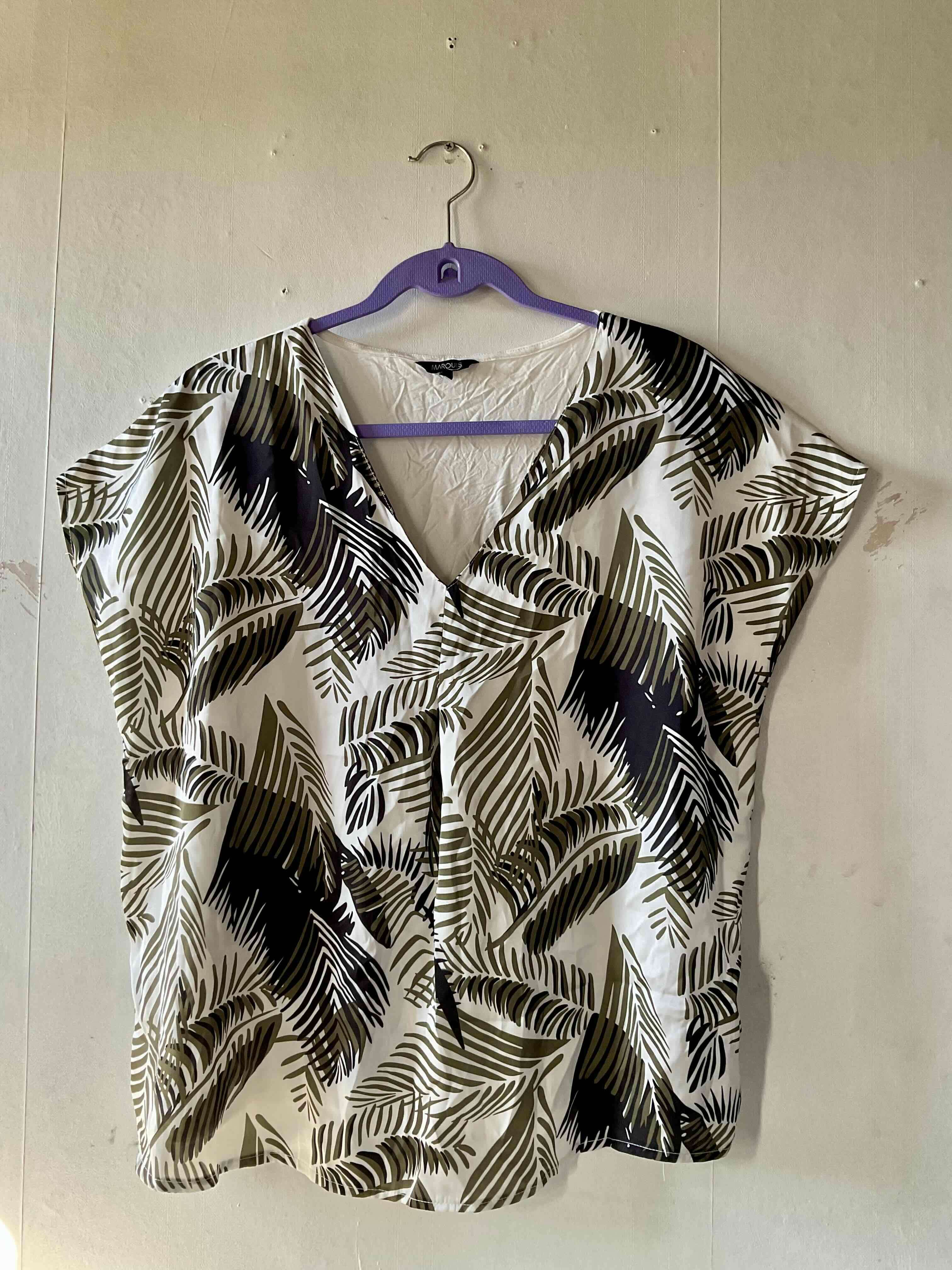 Blusa de mujer con diseño de hojas en blanco y negro. Ideal para usar en verano. En buen estado general.