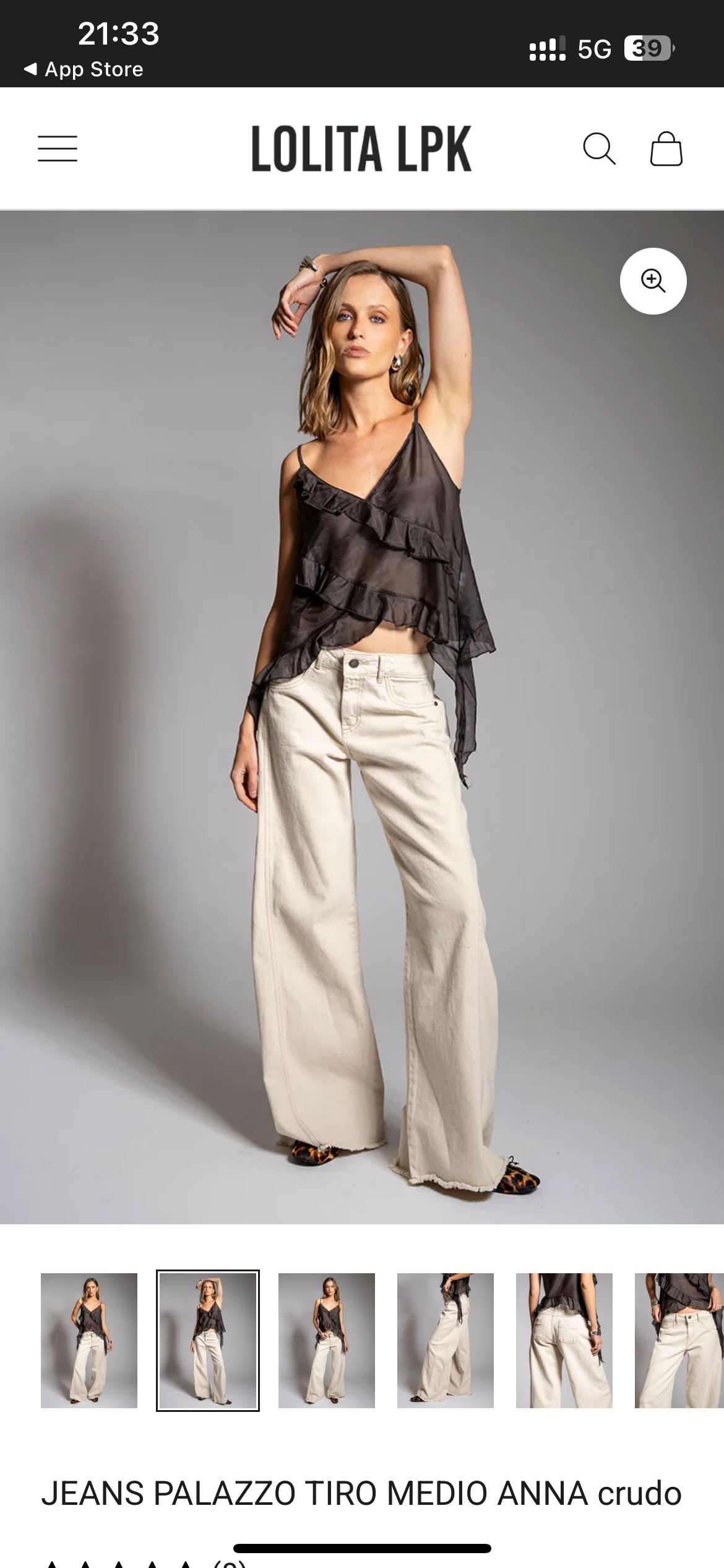 Jeans estilo palazzo, tiro medio, color crudo. Ideal para ocasiones casuales o formales. Nuevo.