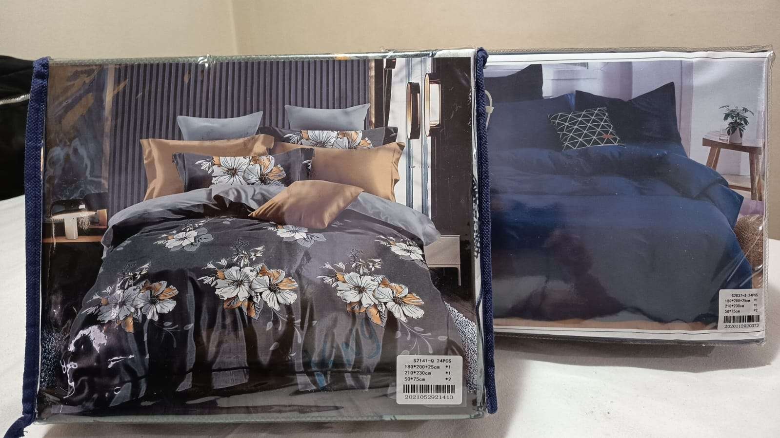Set de sábanas King una con diseño y la otra unicolor. Nuevas