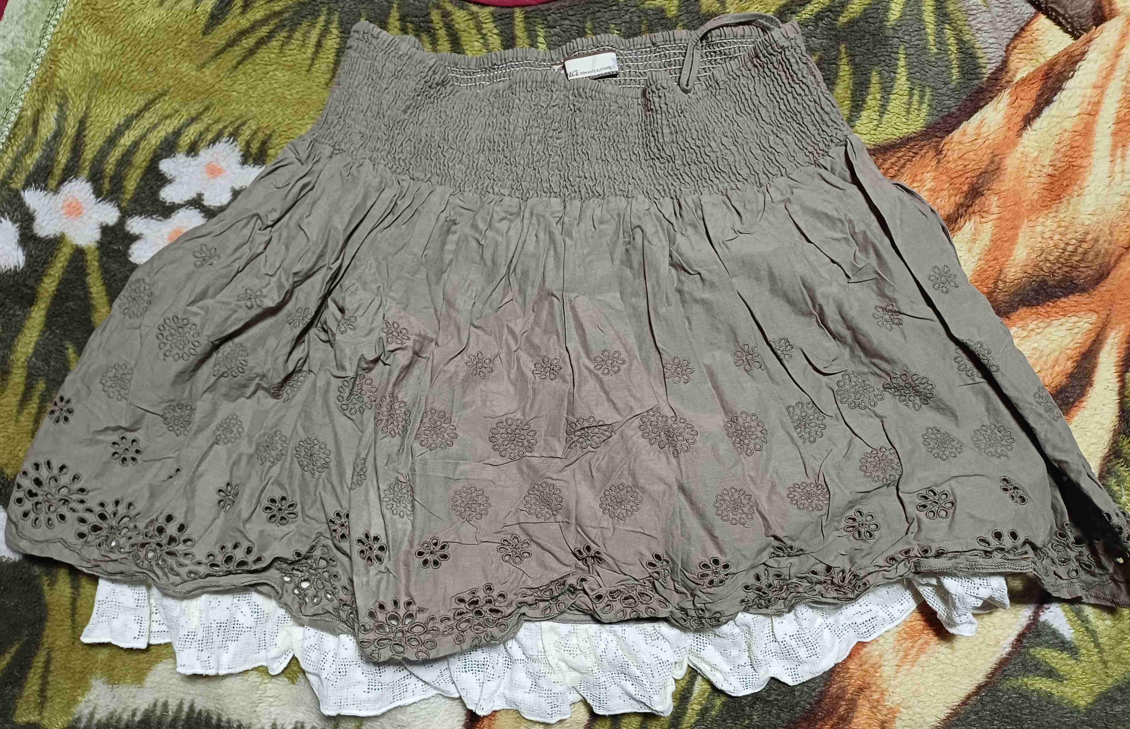 Falda estilo boho con bordados florales. En buen estado y perfecta para el verano. Elasticada.