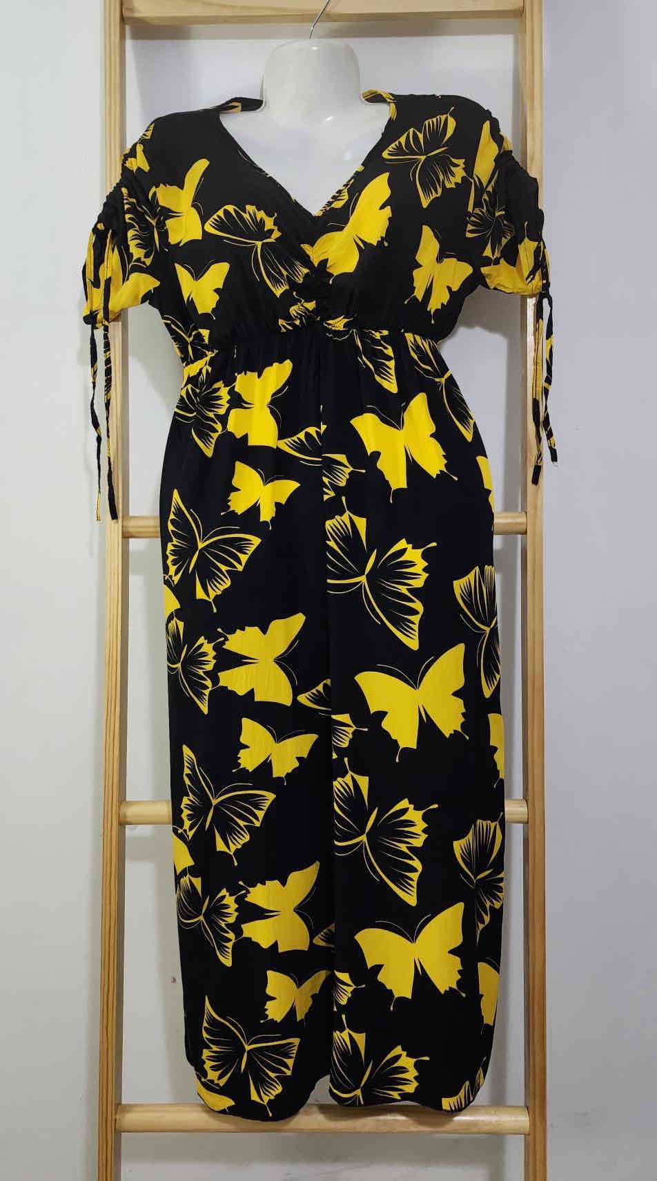 Vestido cómodo y llamativo con estampado de mariposas amarillas. Ideal para el verano. En buen estado general.