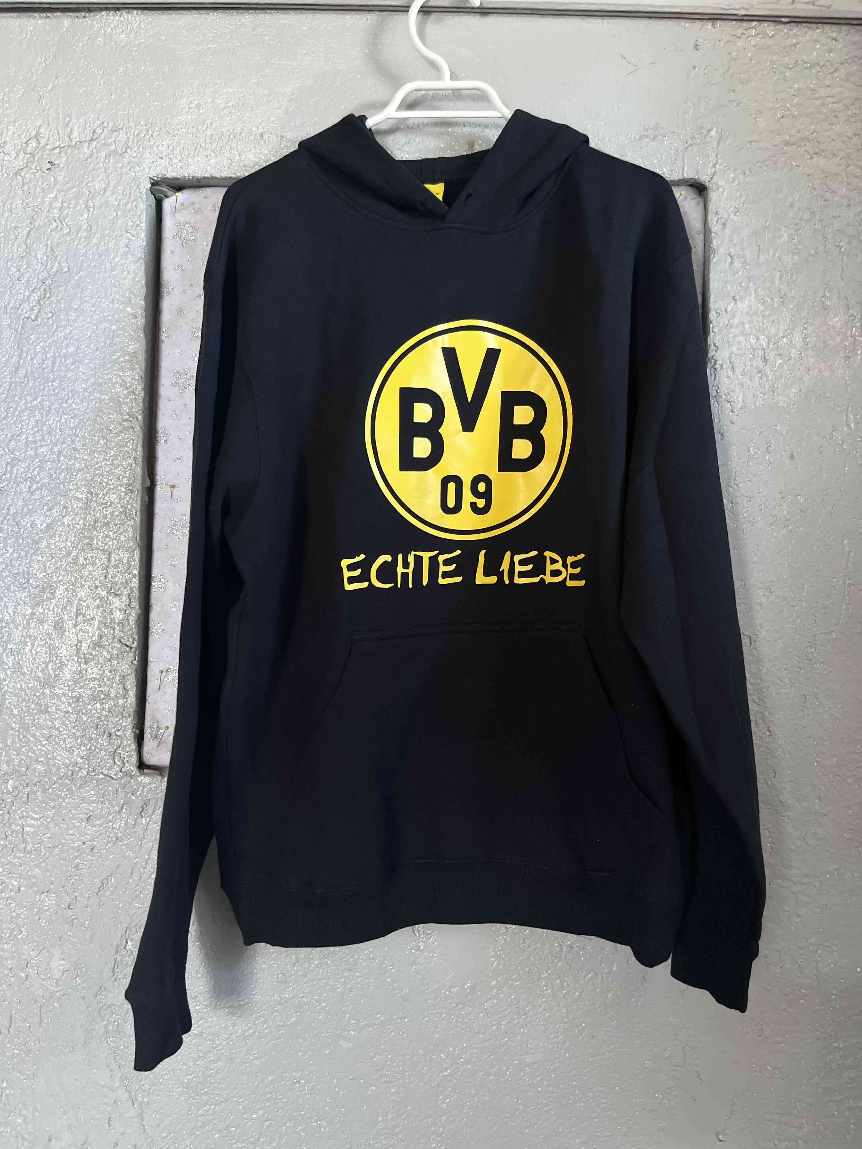 Polerón con capucha del Borussia Dortmund, en buen estado con logo amarillo. Ideal para hinchas del fútbol.