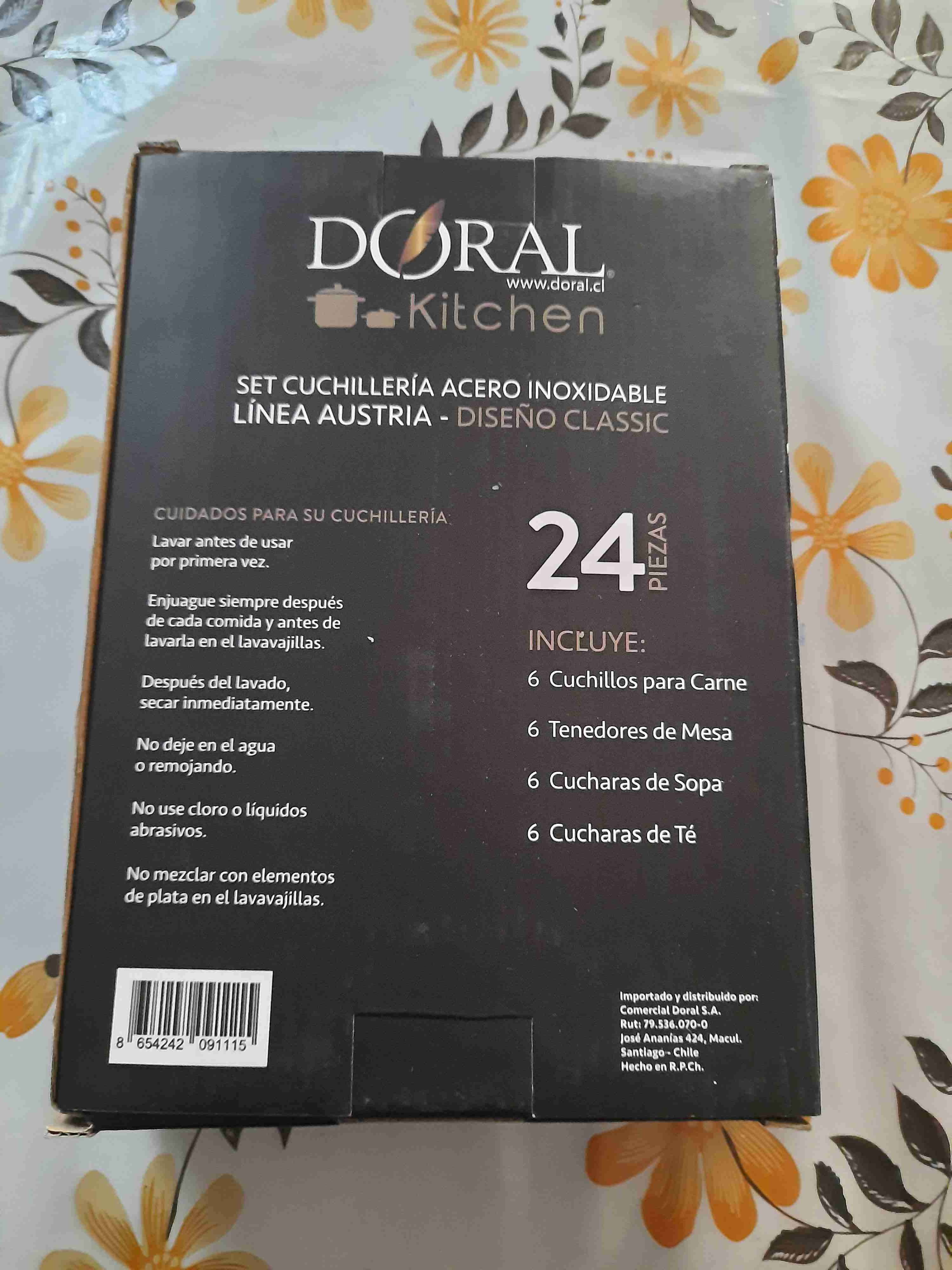 Juego de 24 piezas de acero inoxidable, ideal para uso diario. Incluye cuchillos, tenedores y cucharas de diseño clásico.