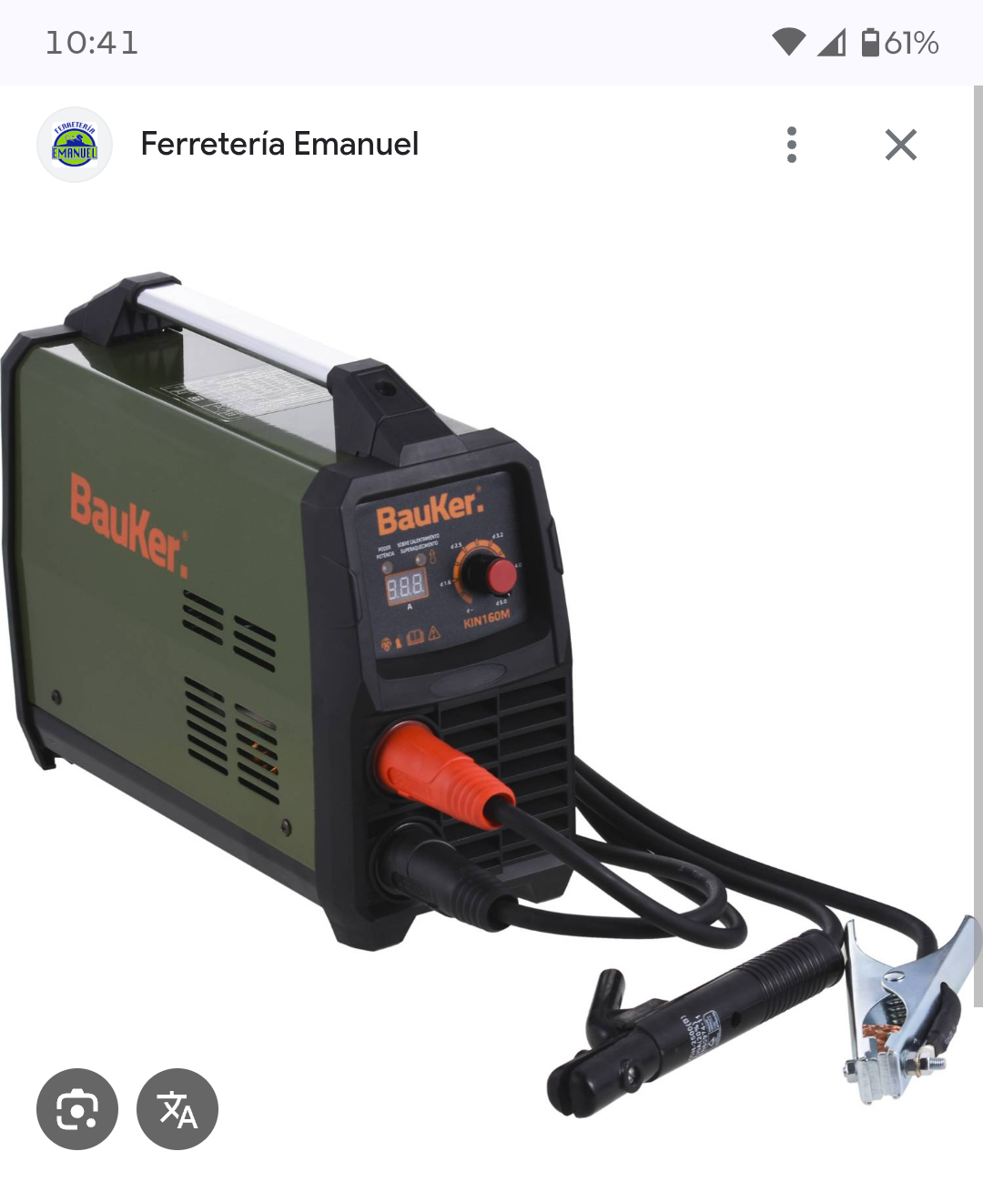 Soldadora inverter BauKer modelo KIN160M, ideal para trabajos de soldadura en casa o taller. En buen estado, incluye cables y pinzas.