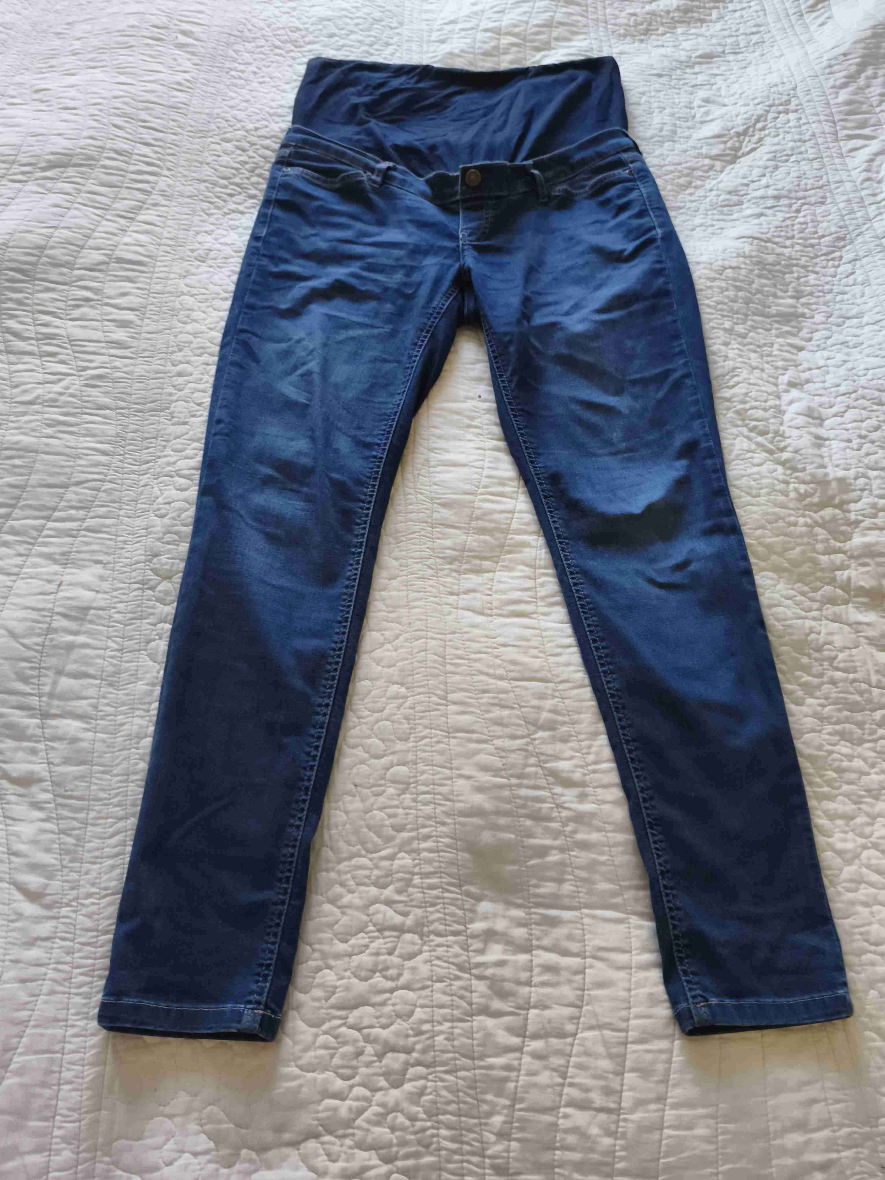 Jeans maternales de mezclilla azul oscuro, cómodos y en buen estado. Ideales para el día a día durante el embarazo. L XL