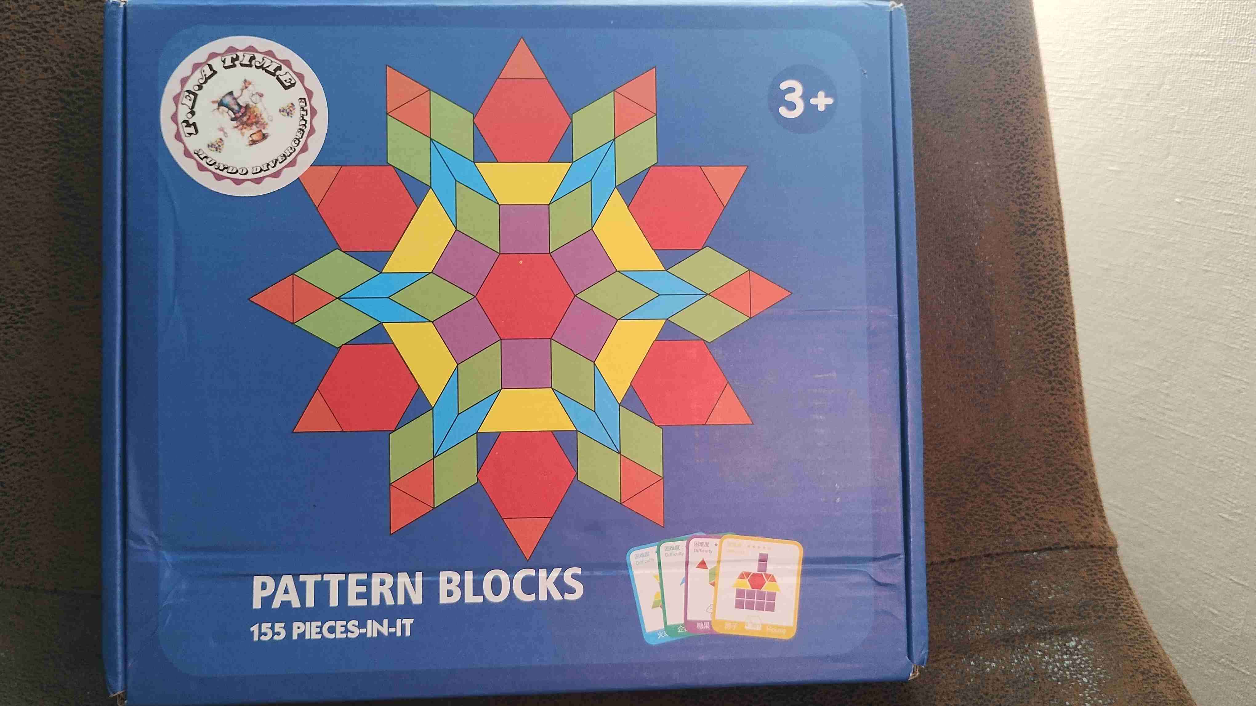 Entretenido juego de bloques de patrones para estimular la creatividad en niños de 3 años en adelante. Incluye 155 piezas coloridas.