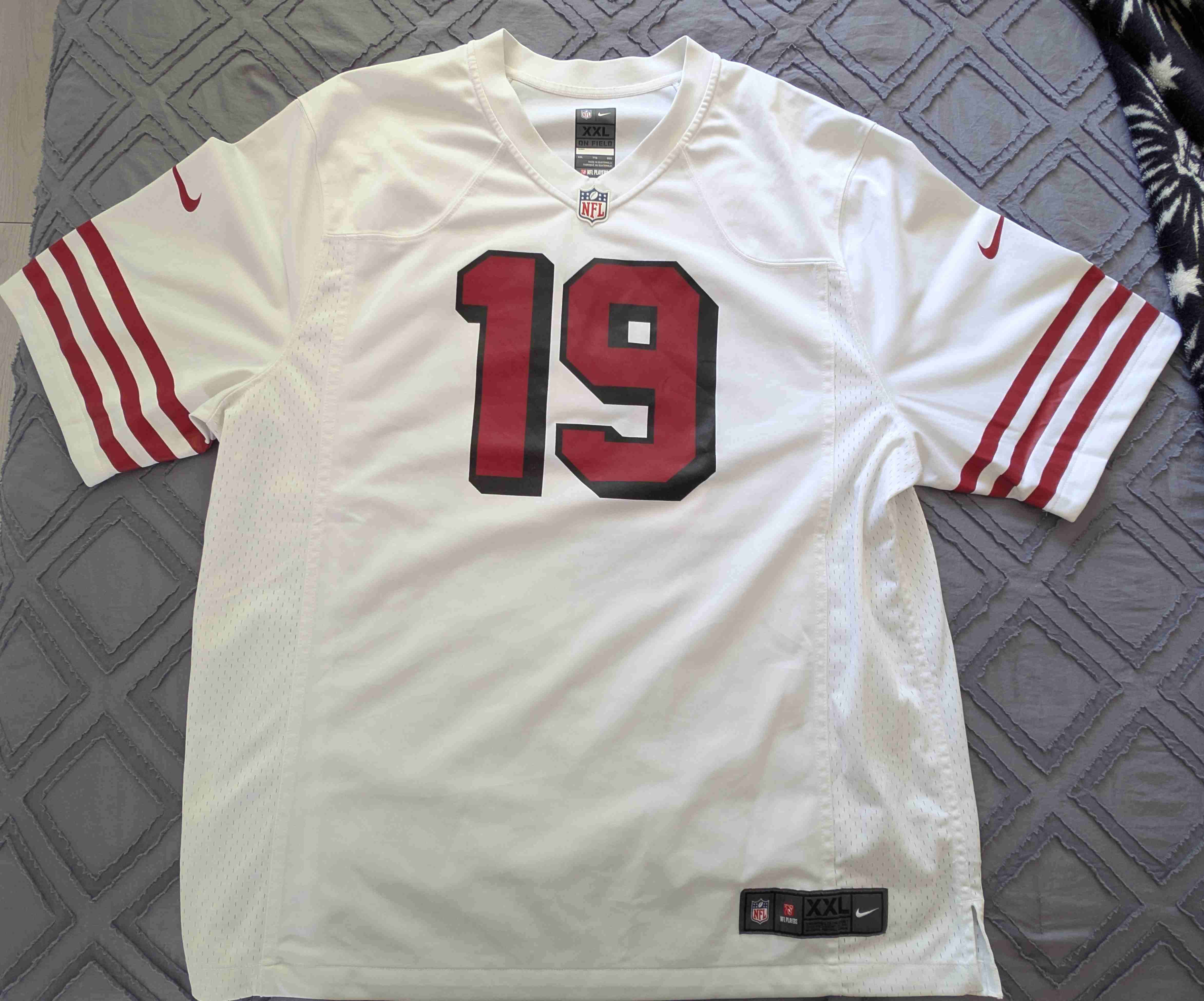 Camiseta de la NFL blanca con el número 19 en el frente. Ideal para fanáticos del fútbol americano. En buen estado.