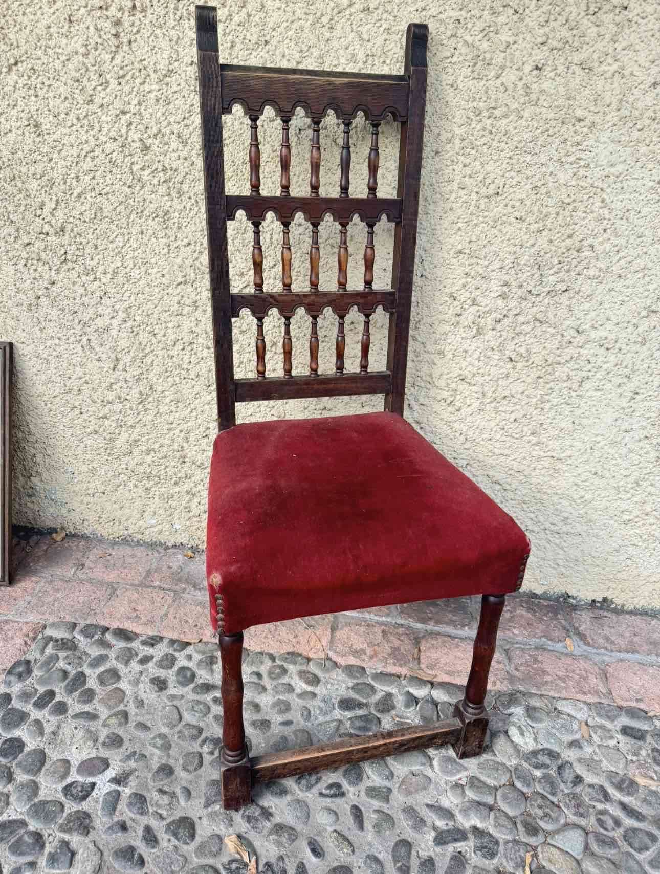 Silla clásica de madera con tapiz rojo. En buen estado, ideal para comedor o sala de estar.