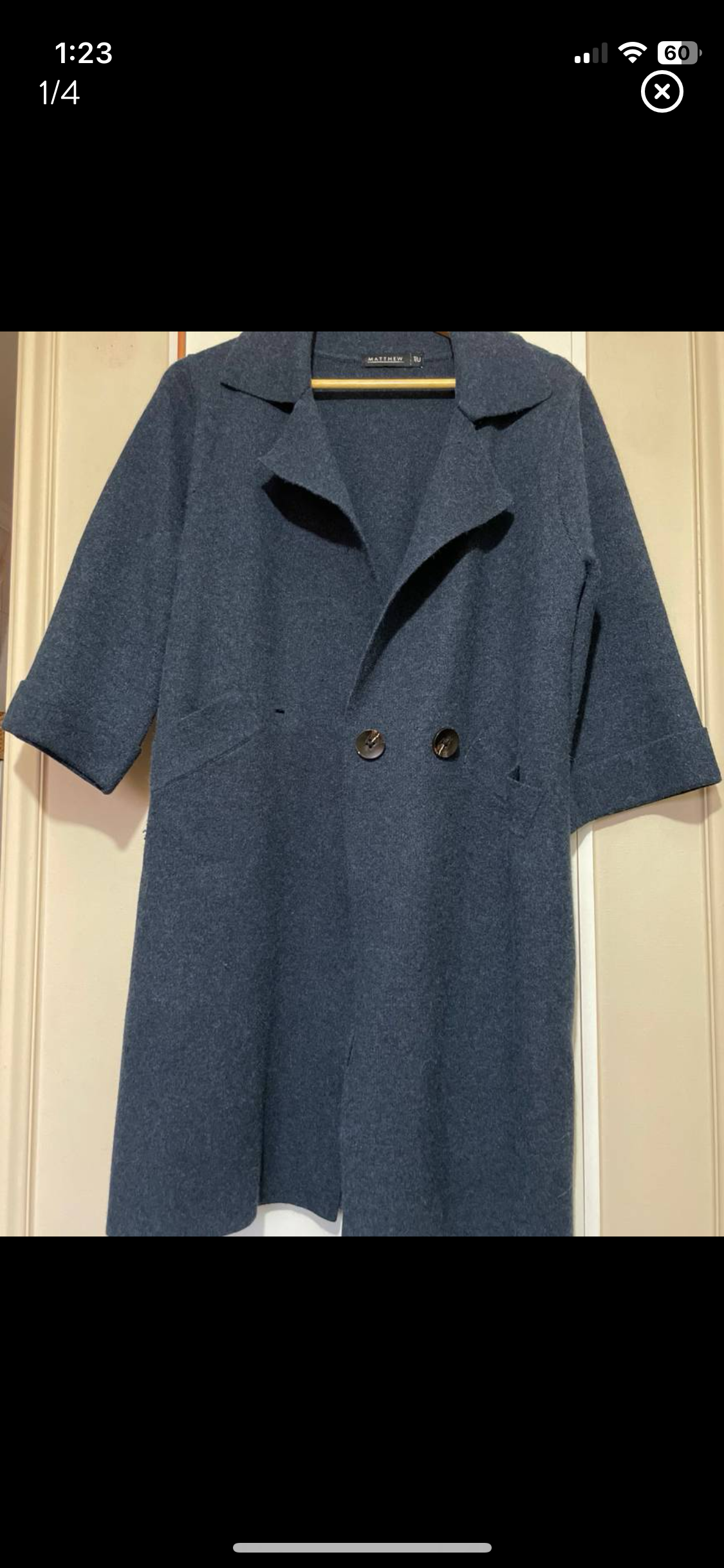 Elegante abrigo azul para mujer, ideal para el invierno. En buen estado con detalles clásicos.