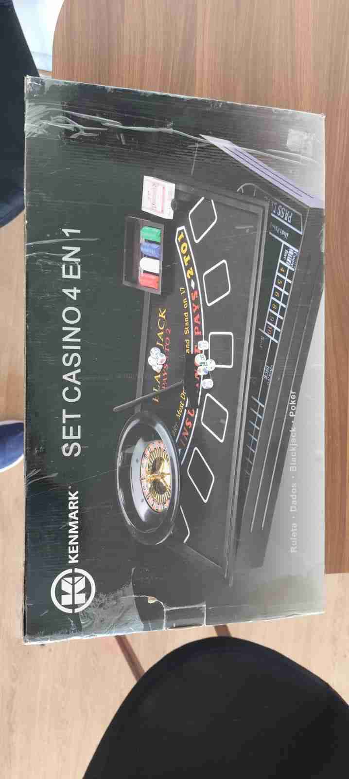 Set de casino con ruleta, dados, blackjack y póker. Ideal para juegos en casa. Cómo nuevo, solo la caja con desgaste.