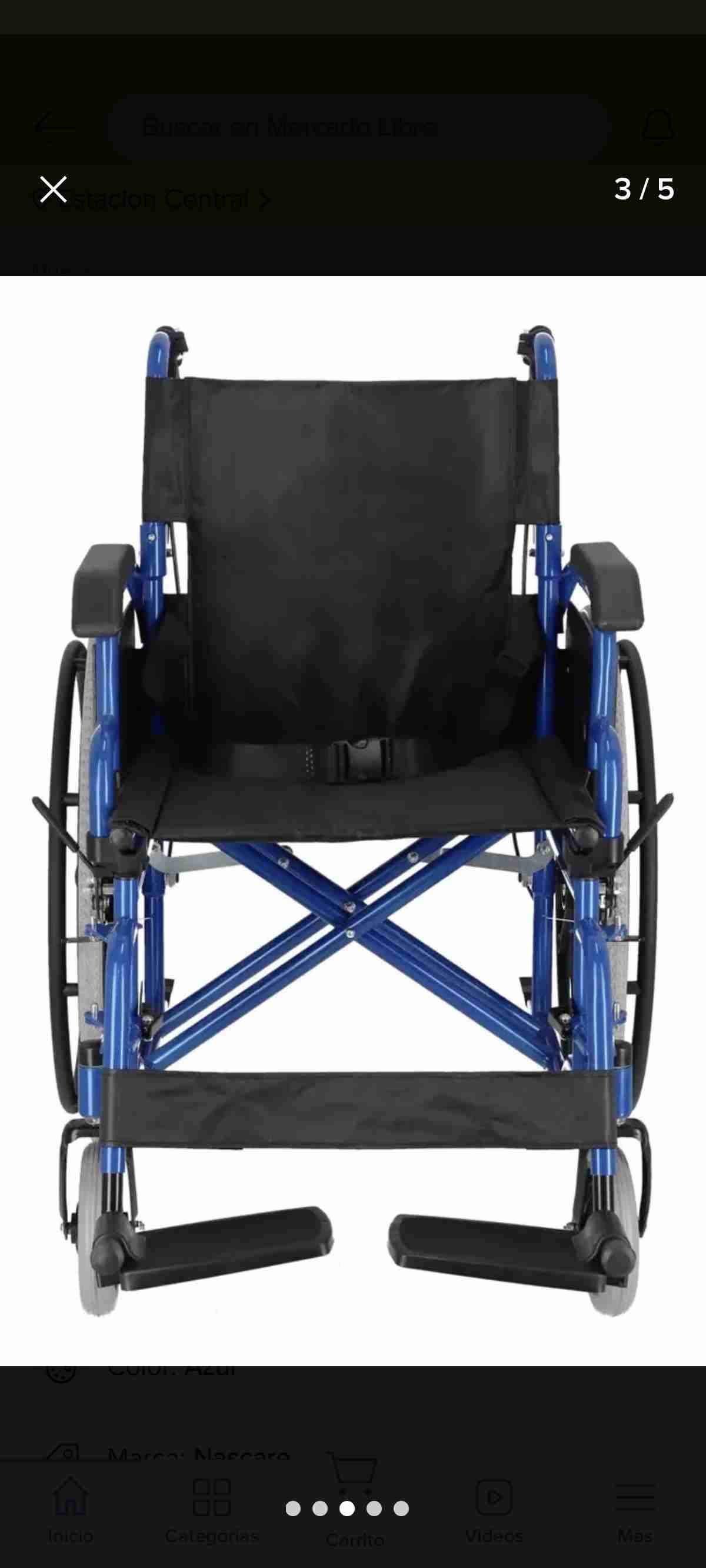 Silla de ruedas plegable en color azul, ideal para movilidad diaria. Nueva SIN USO!.