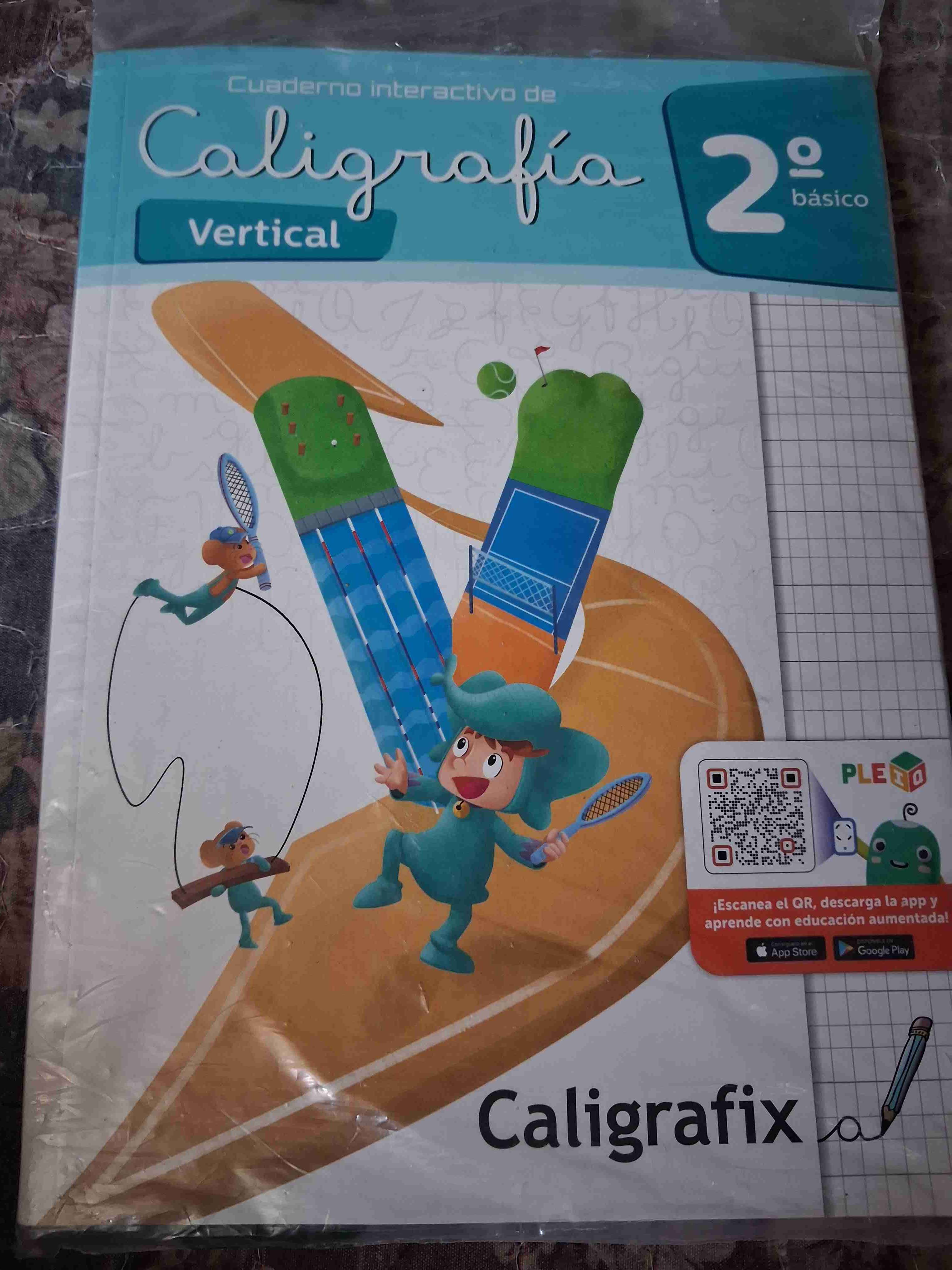 Cuaderno interactivo de caligrafía para segundo básico. Ideal para practicar escritura vertical. Nuevo en su embalaje original.