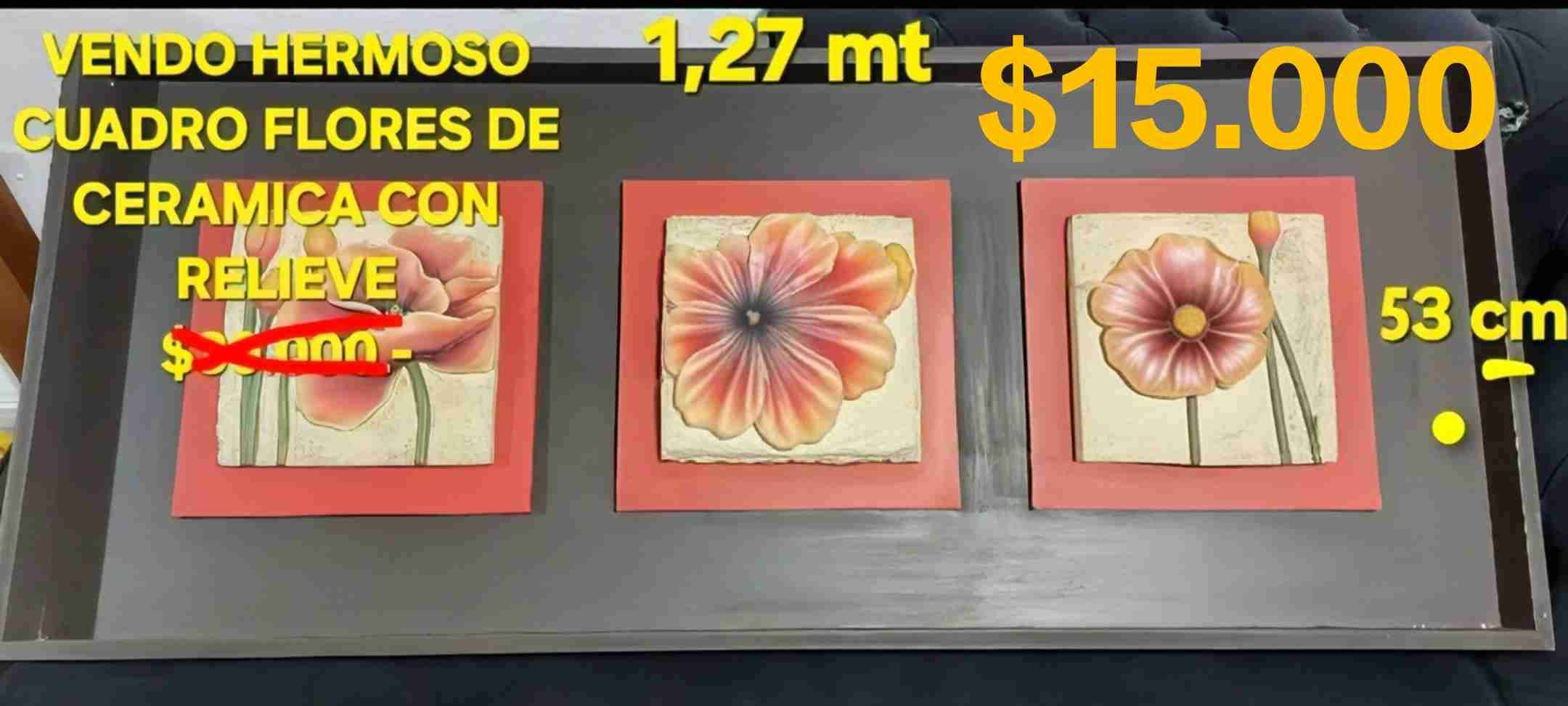 Hermoso cuadro con flores en cerámica de relieve, ideal para decoración. En buen estado, listo para colgar.