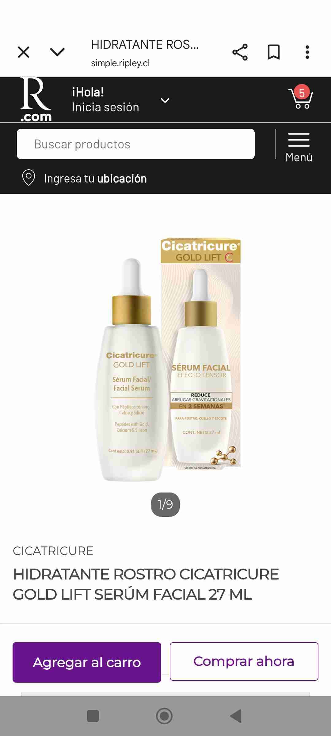 Sérum facial con efecto tensor y péptidos de oro. Ideal para reducir arrugas y cuidar el rostro.