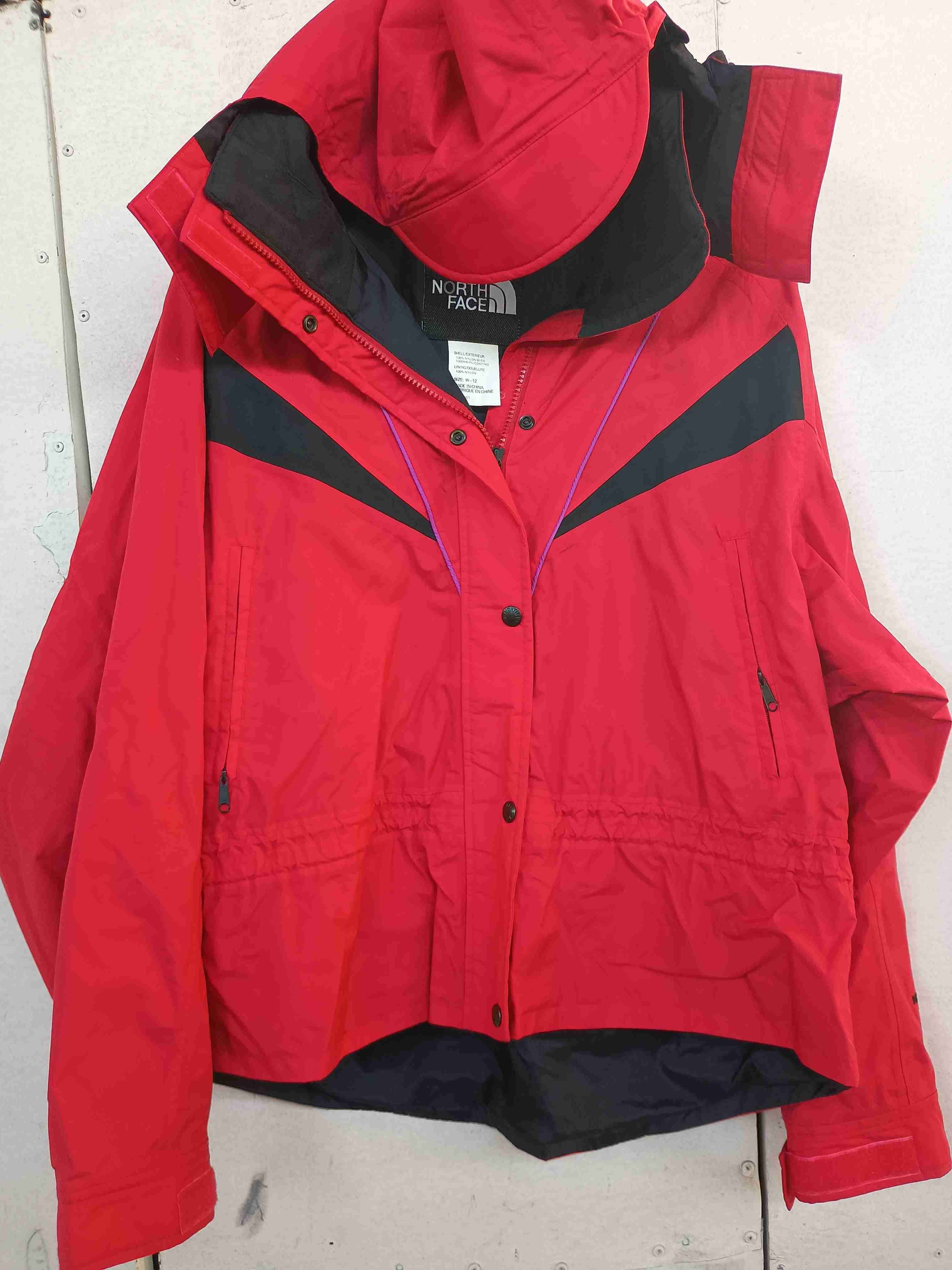 Chaqueta roja resistente al agua, perfecta para actividades al aire libre. Buen estado, con capucha ajustable. Vintage.