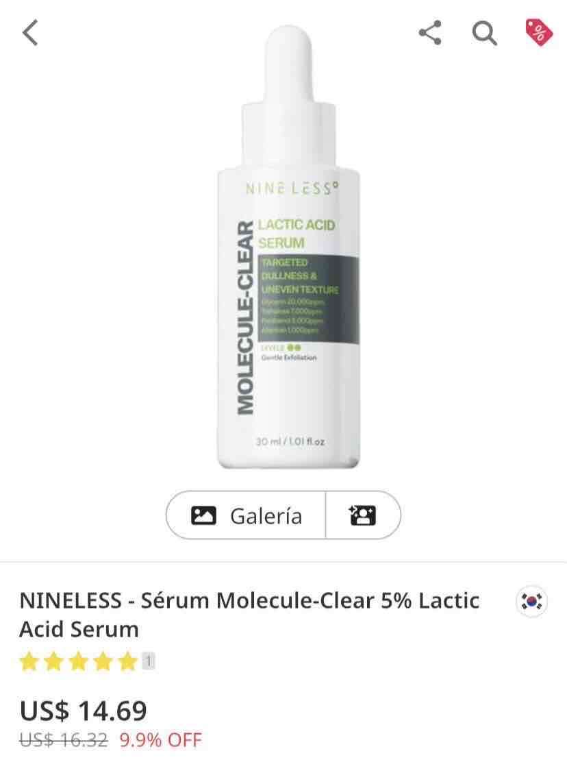 Sérum para exfoliación suave y mejora de textura. Ideal para piel opaca. Estado excelente.