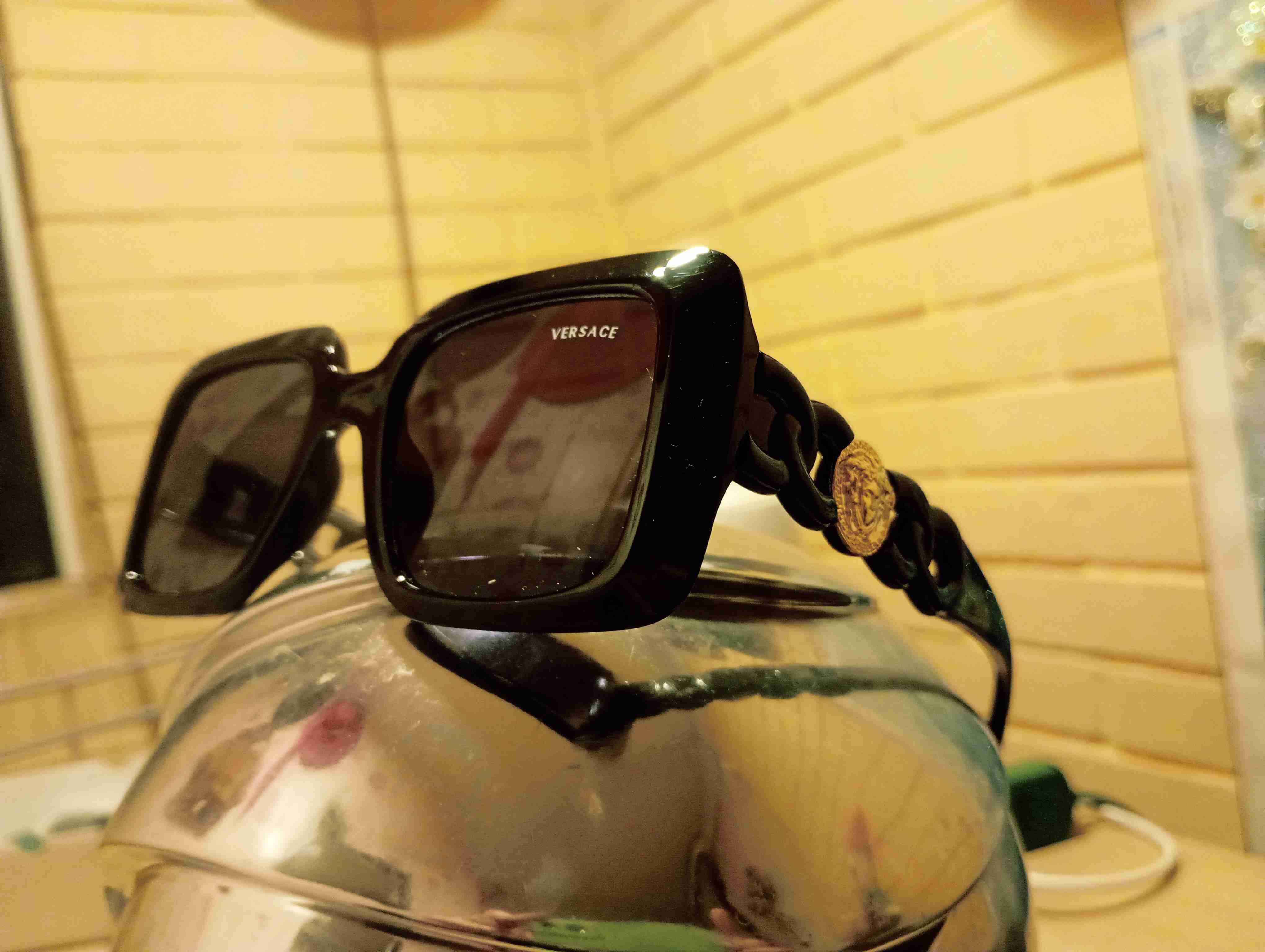 Elegantes gafas de sol negras con detalle de cadena. Calidad g1En buen estado, perfectas para cualquier ocasión.