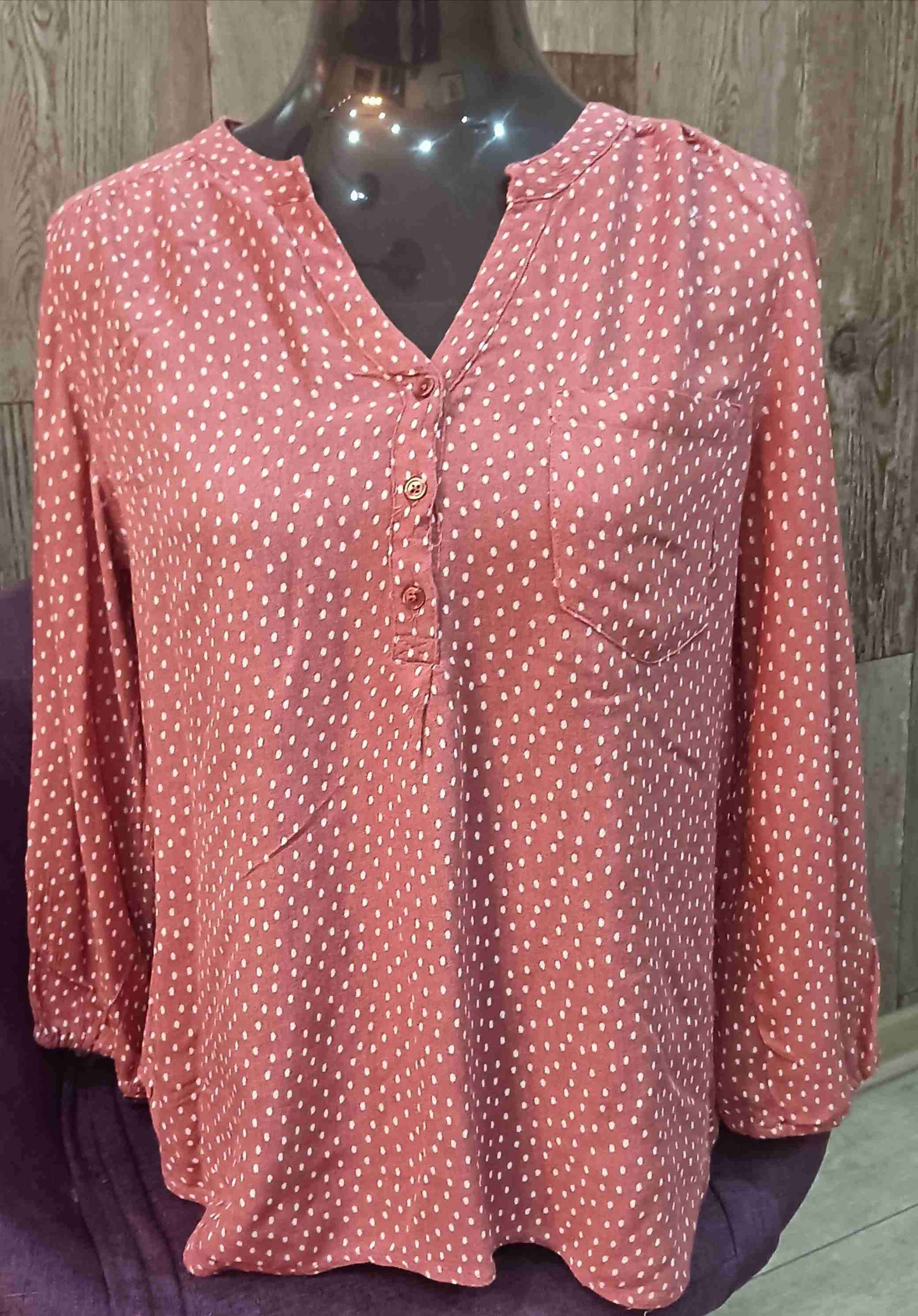 Talla S/M, Blusa femenina de manga larga con diseño a lunares, ideal para un look casual. En buen estado.