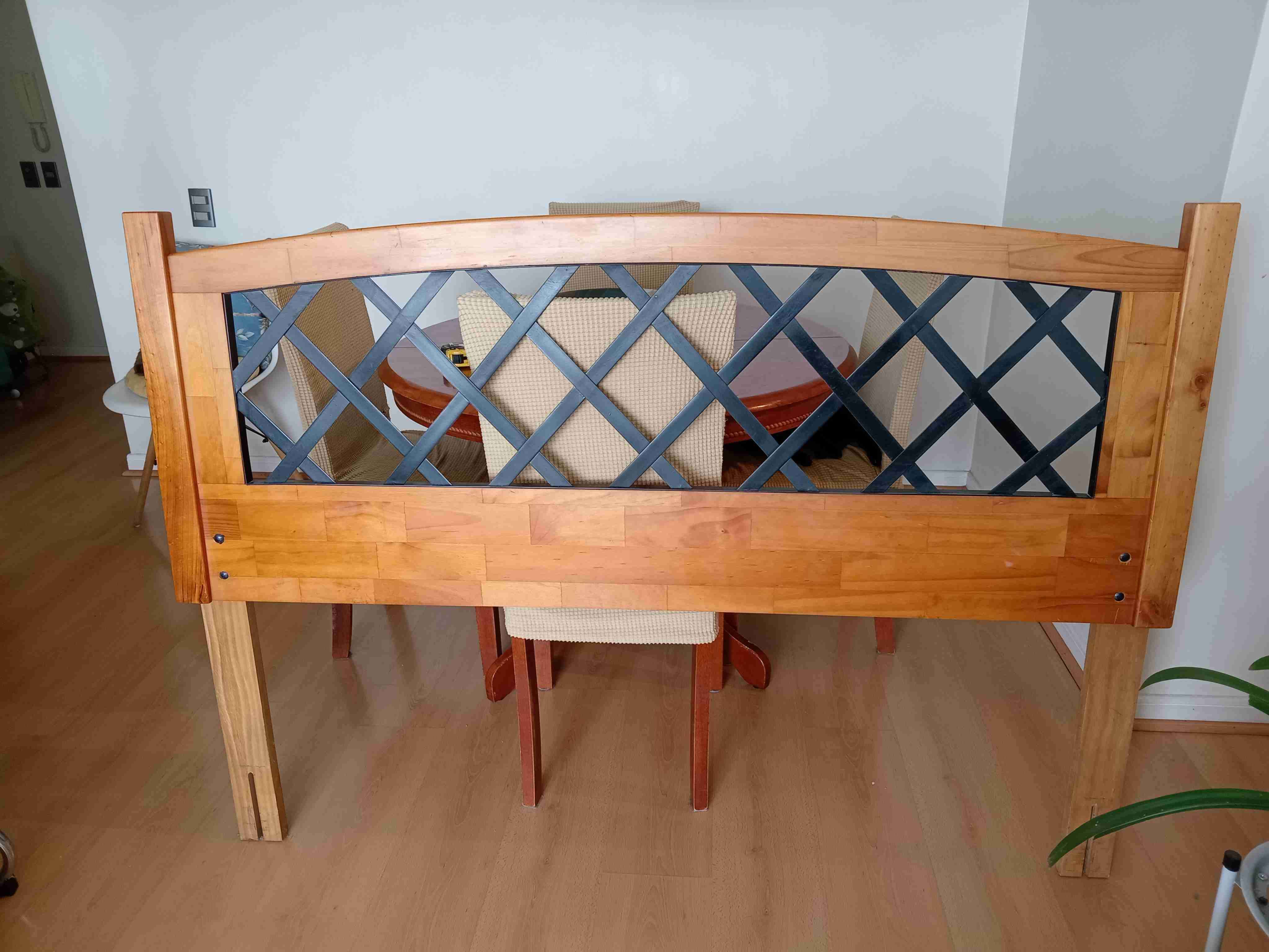 Respaldo de cama de madera y metal