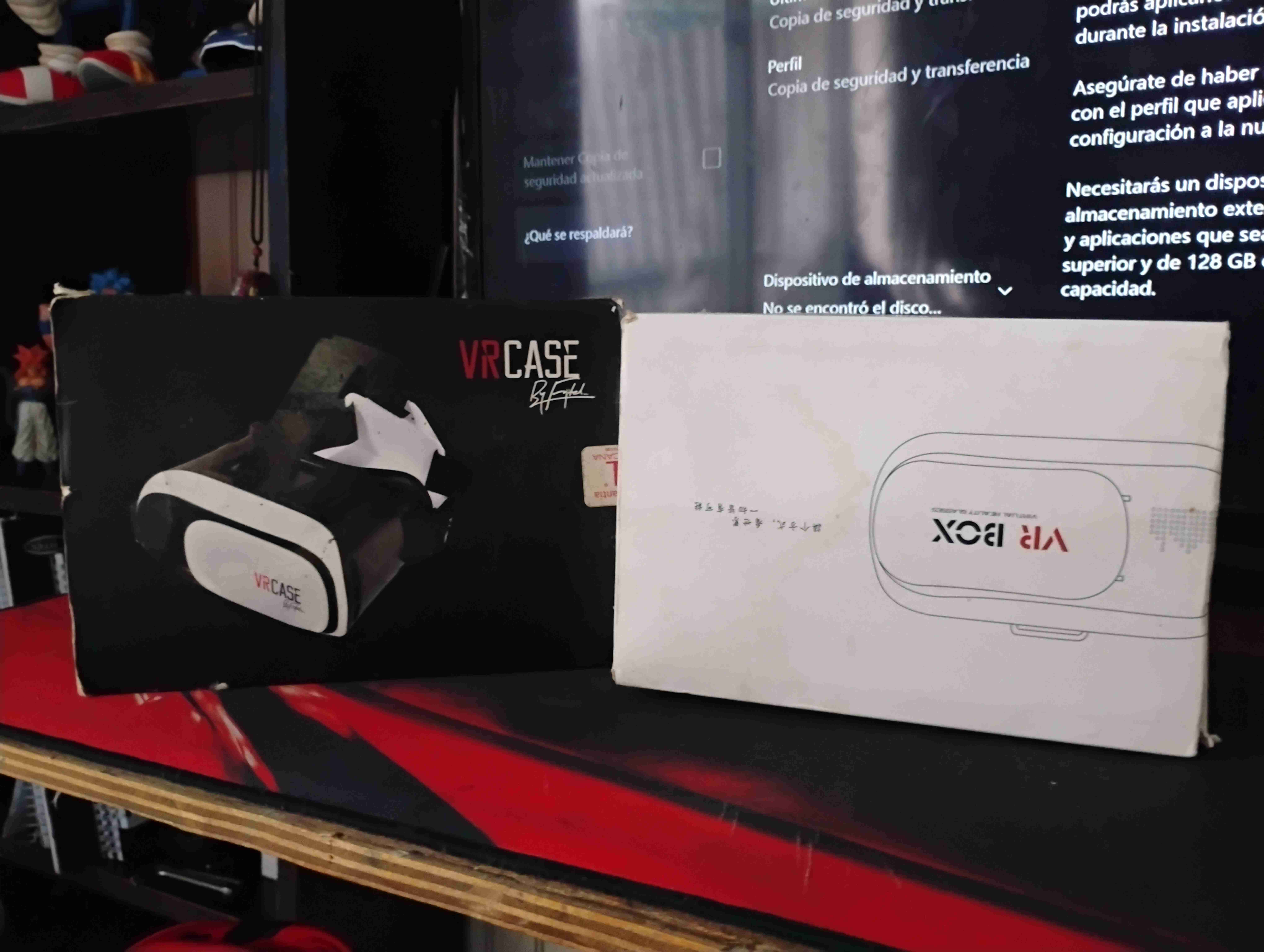 Set de gafas de realidad virtual, ideal para inmersión en juegos y videos. Ambas cajas incluidas en el paquete.