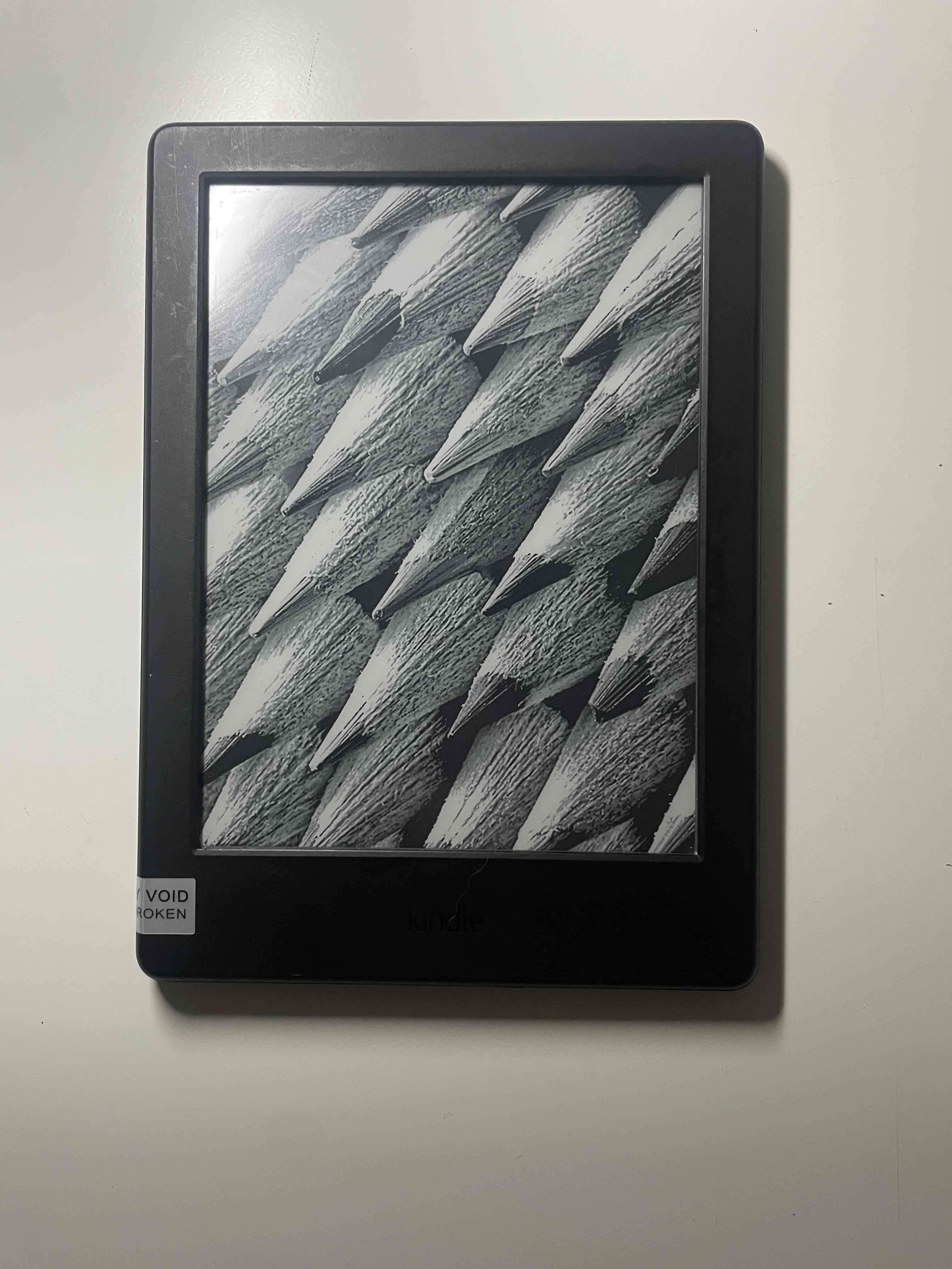 Kindle en buen estado, ideal para lectura diaria. Pantalla sin reflejos. 4gb. Solo un detalle (linea) en la pantalla que no interviene en la lectura. Incluye protector.