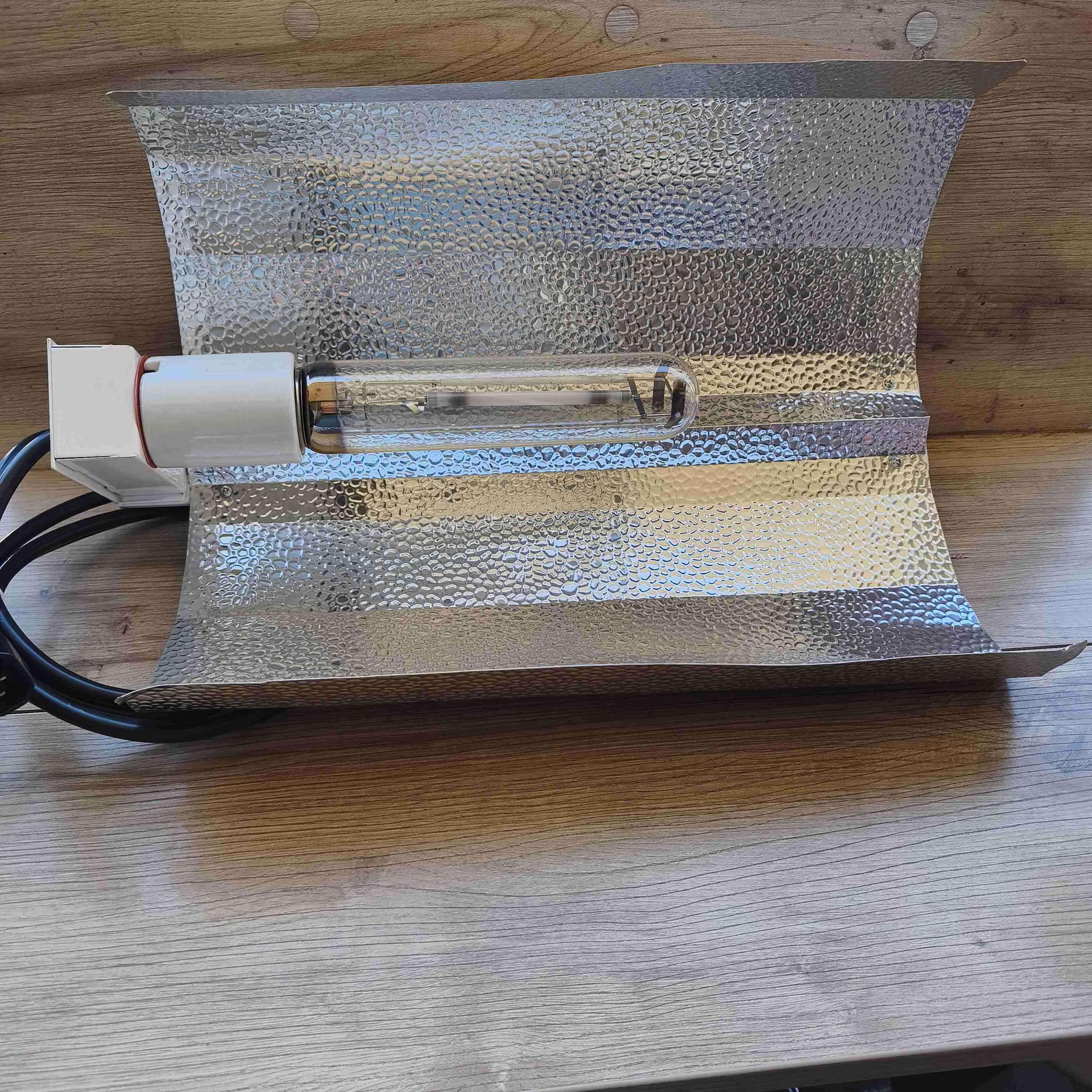 Reflector de metal. Ampolleta de sodio 250w Balastro 250w para conectar directamente al reflector.