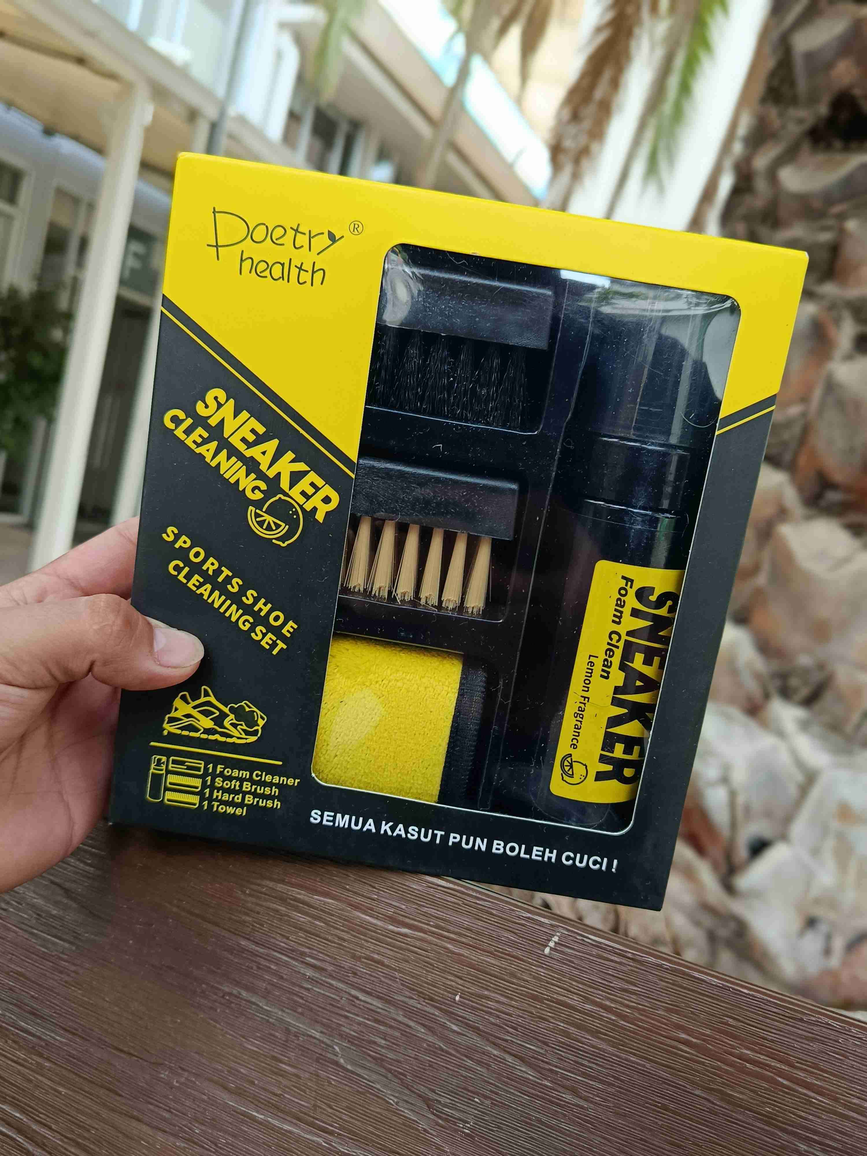 Set para limpiar zapatillas deportivas. Incluye cepillos y limpiador en espuma. Ideal para mantener tus zapatos como nuevos.