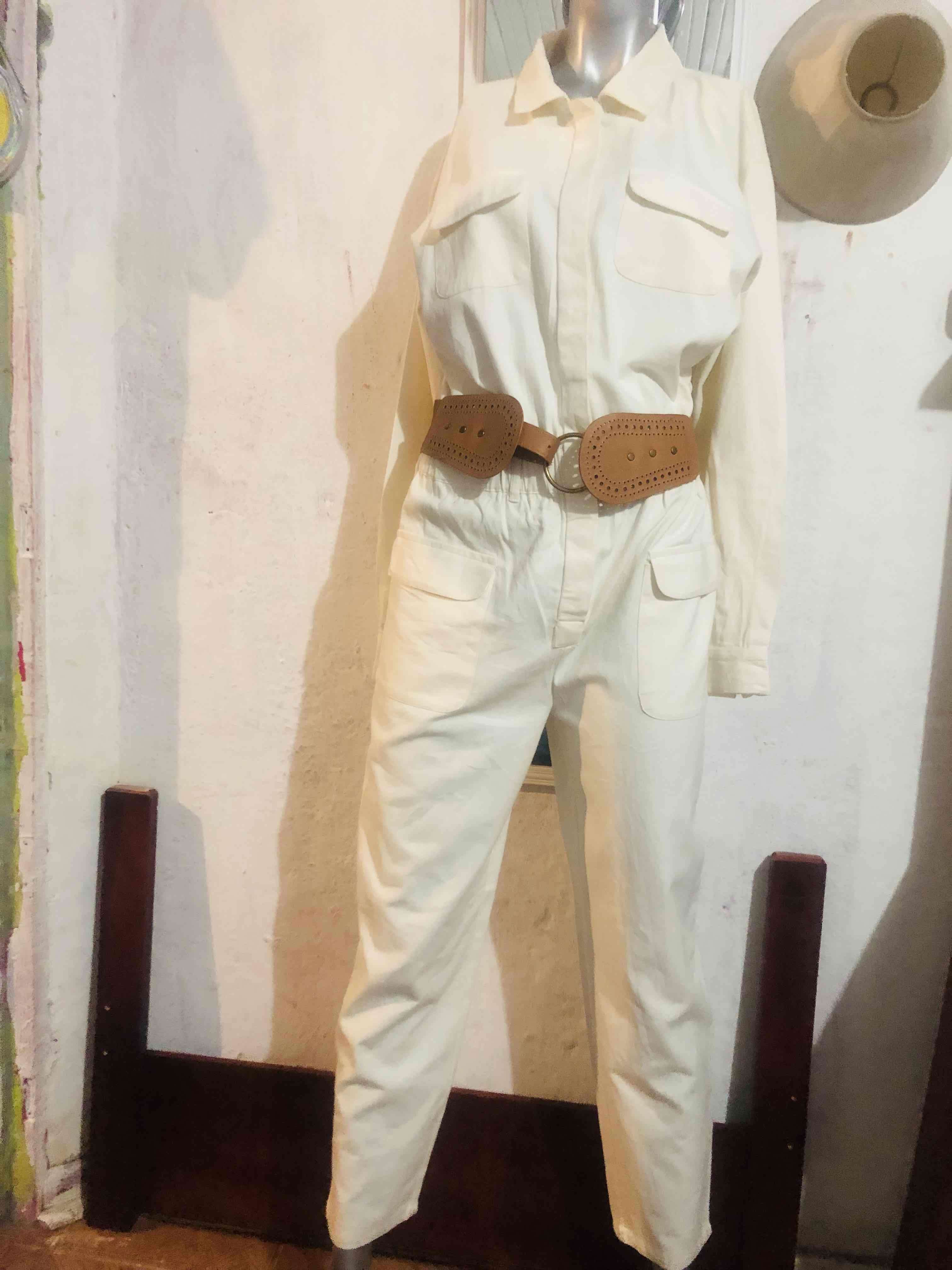 Enterito color blanco con cinturón marrón. Perfecto para un look casual y cómodo. En buen estado general.