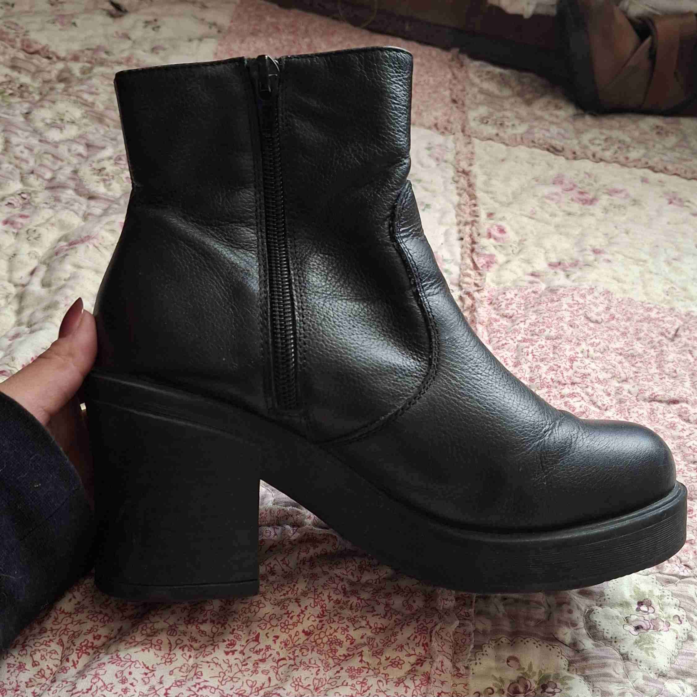 Botines de cuero negro con cierre lateral. En buen estado, ideales para invierno.